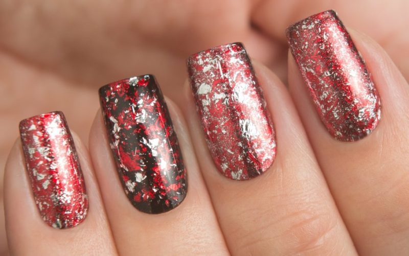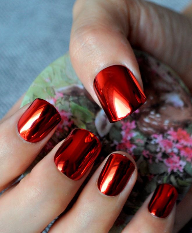 - Красная втирка на ногтях