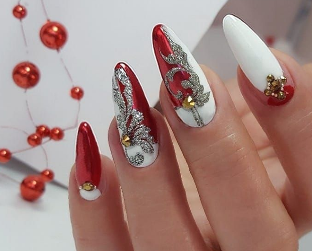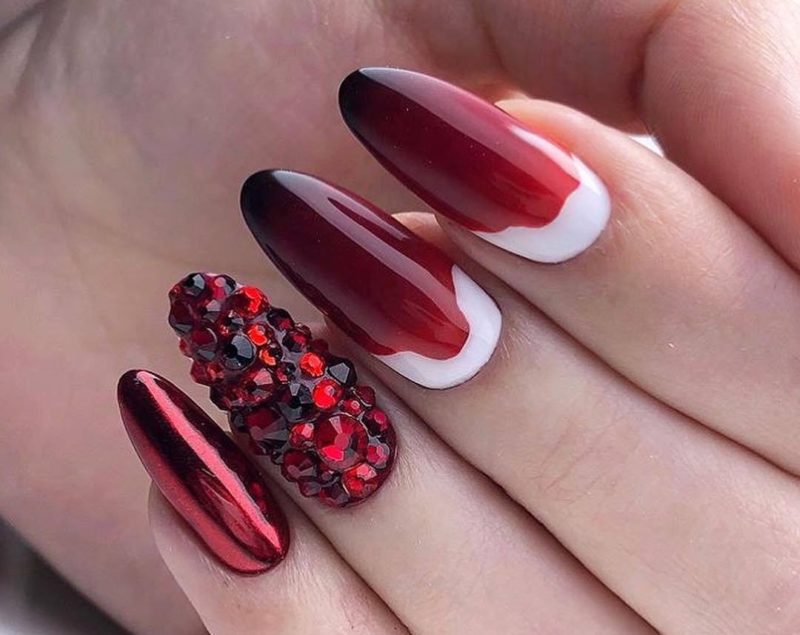 Красный маникюр для решительных и смелых. Алые, винные, коралловые оттенки лака — все они отлично смотрятся как в глянцевом, так и матовом исполнении. Обычно мастера нейл арта рекомендуют делать акцент на одном или двух пальчиках, чтобы не переборщить. используйте это правило, если решите покрыть красные ноготки слоем расплавленного металла, жемчужной пыли или придать им голографическое сияние.