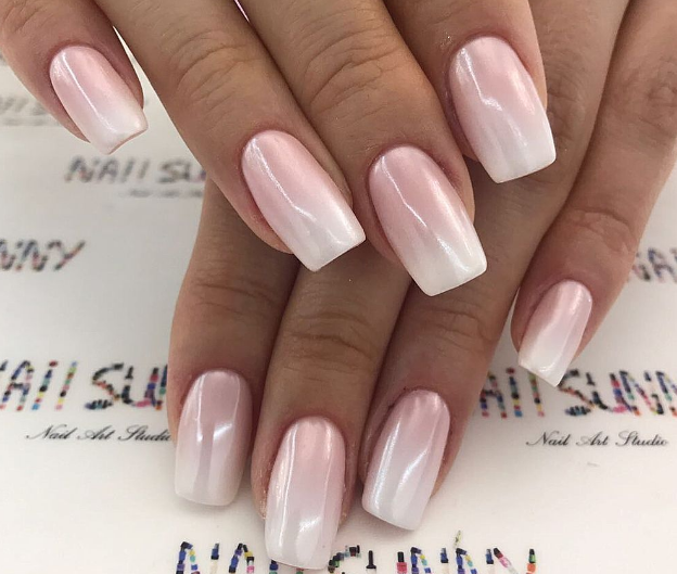 Розовые ногти с втиркой