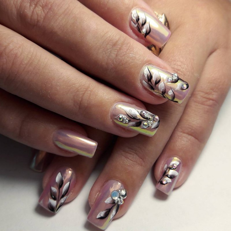 Актуальные оттенки маникюра втирка с дизайном
