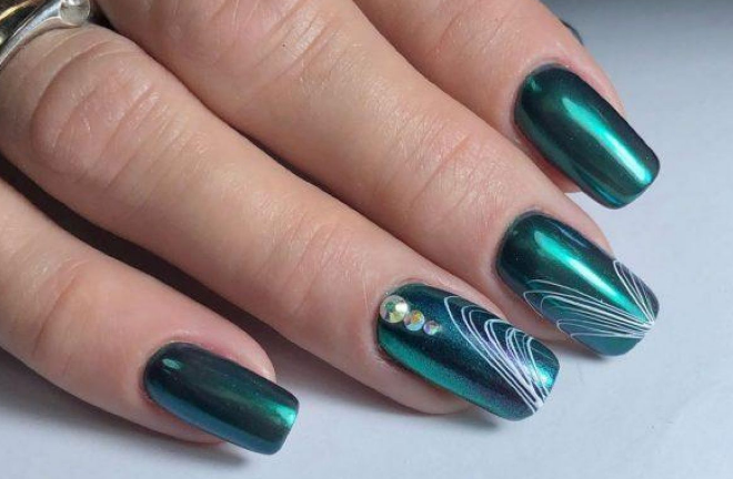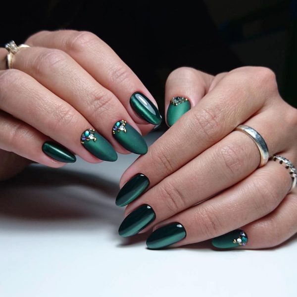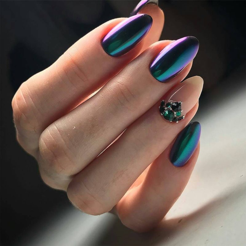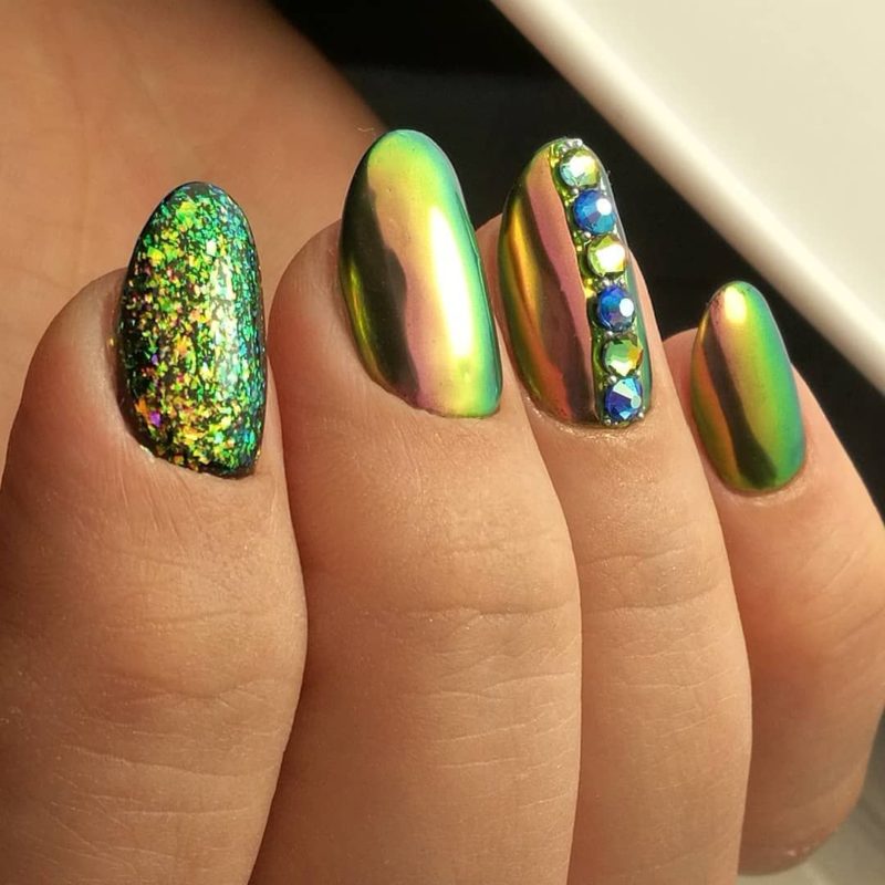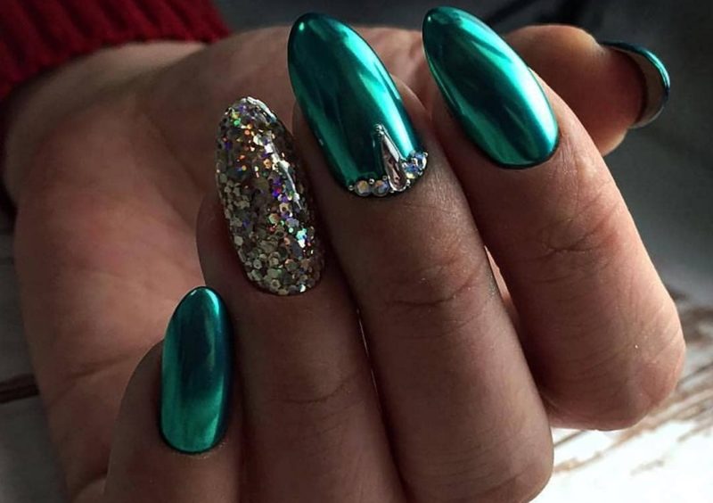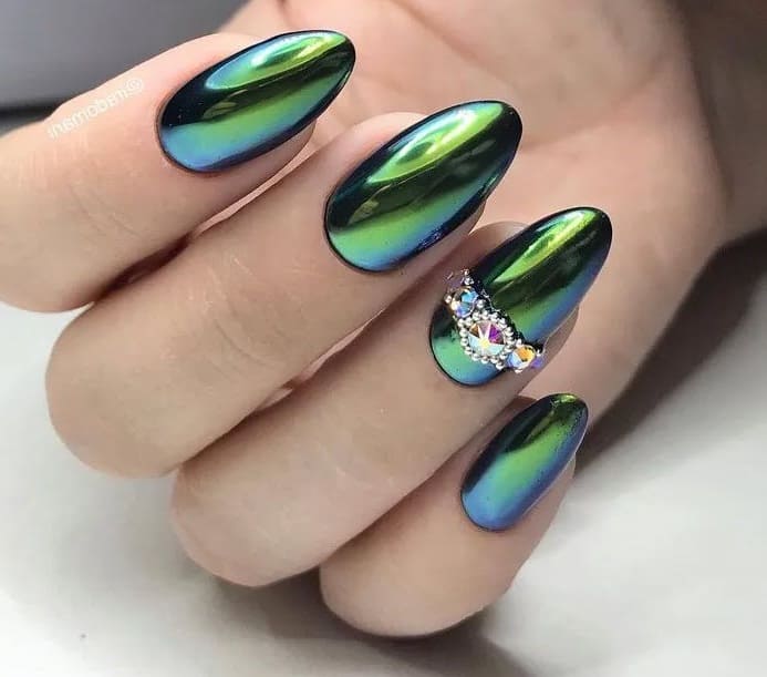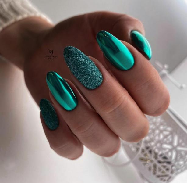 Оттенки зеленого в сезоне 2026 снова актуальны. Какой бы из них вы не выбрали, просто добавьте зеркального блеска и ваши ноготки будут похожи на сверкающие изумруды.