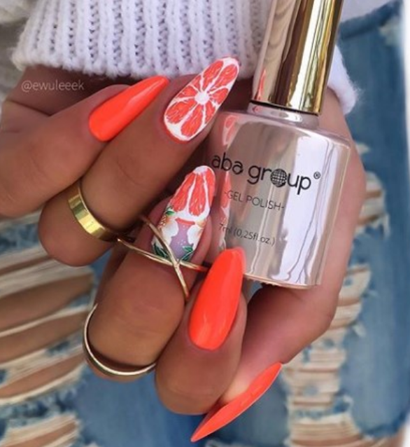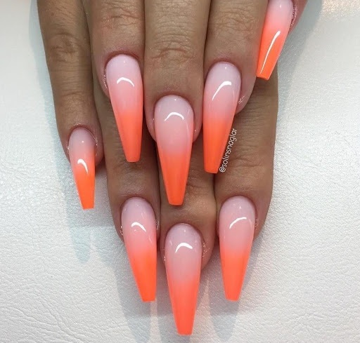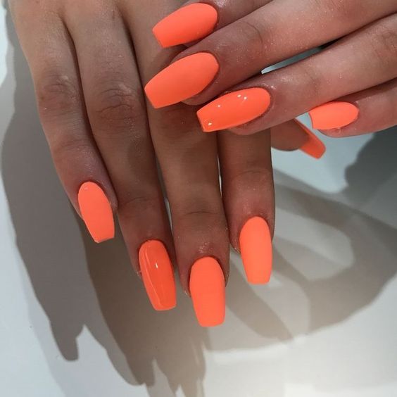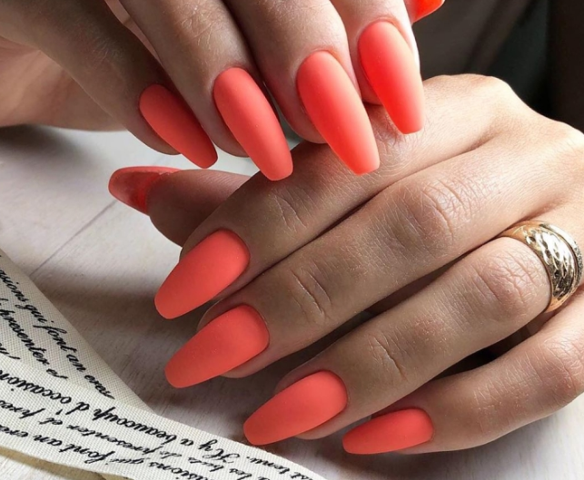 В зависимости от ситуации вы можете выбрать интенсивный тон — оранжево-розовый, коралловый, оранжево-персиковый, лососевый или абрикосовый. это спокойные тона, позволяющие “приглушить” интенсивность формы ногтей и сделать повседневный маникюр.