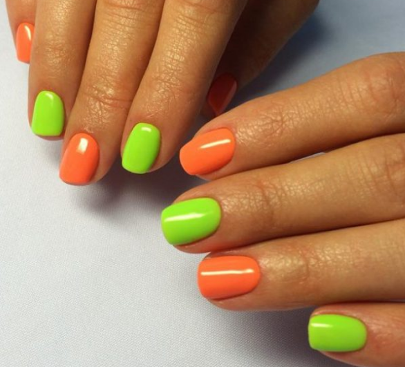 Самый интенсивный оттенок в палитре. Стоит быть осторожным с ним, даже при условии, что мастера нейл-арте помещают его на самую верхушку списка актуальности. Помните главное правило дизайна ногтей — уместность. То есть моно-маникюр в неоновом цвете допустим на дискотеке, тематическом празднике и в компании, где нет строгих требований дресс-кода. А вот для повседневности допустимо выделить один-два пальчика.
