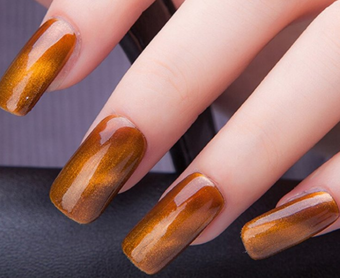 Для создания кошачьего глаза вам понадобится магнитный лак и дополнительный инструмент — магнит. Не забывайте о том, что перед применением магнитный лак необходимо “встряхнуть”. Но делают это не интенсивными движениями, а плавно перекатывая флакон в ладонях.