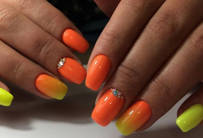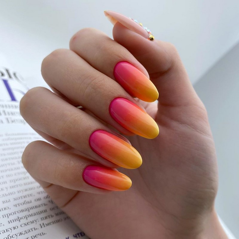 Один из самых заметных и жизнерадостных вариантов градиента в маникюре.