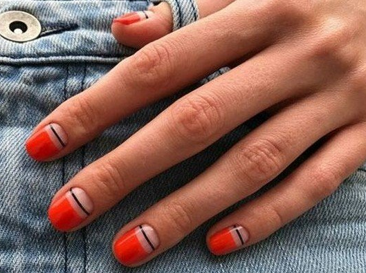 Последняя тенденция в дизайне ногтей — сочетание цветного френча и лунного маникюра.