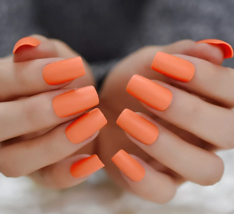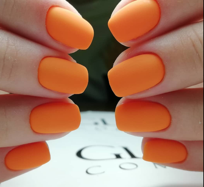 Нейл-мастера рекомендуют выбирать для коротких ногтей приглушенные, мелованные, нюдовые оттенки оранжевого.