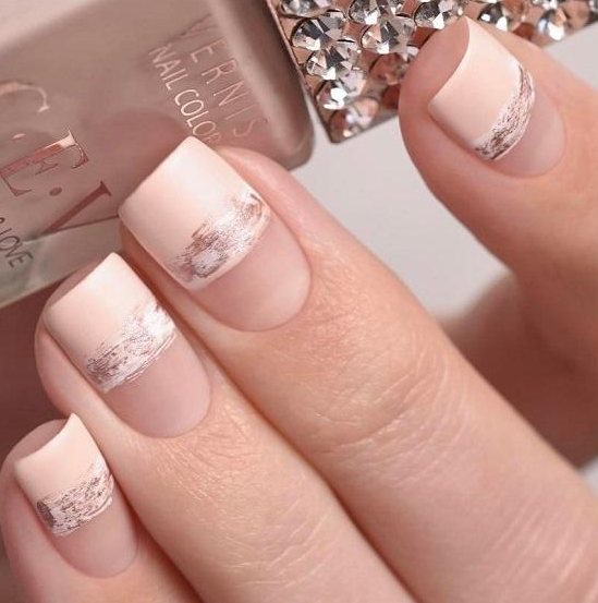 Другим фаворитом в нежном маникюре на длинные квадратные ногти будут матовые тона. Они очень популярны среди женщин всех возрастов. Ведь такие оттенки не слишком броские, они не кричащие. Данные тона придают вашим пальчикам изящности, нежности, естественности и легкости. Здесь прекрасным дополнением станут различные украшения – фольга золотого оттенка, глиттер, рисунки, комбинированный дизайн и многое другое.