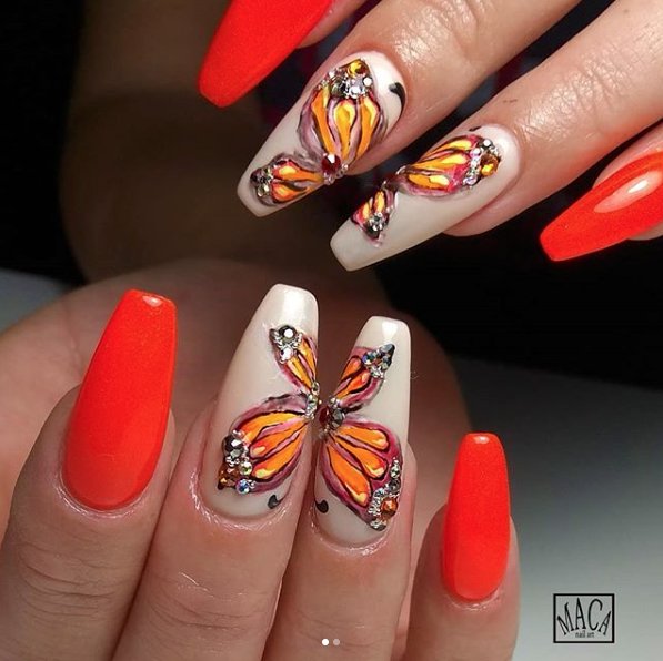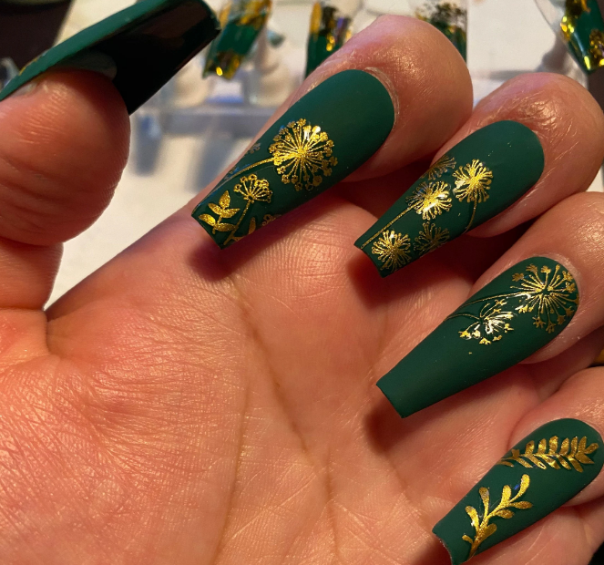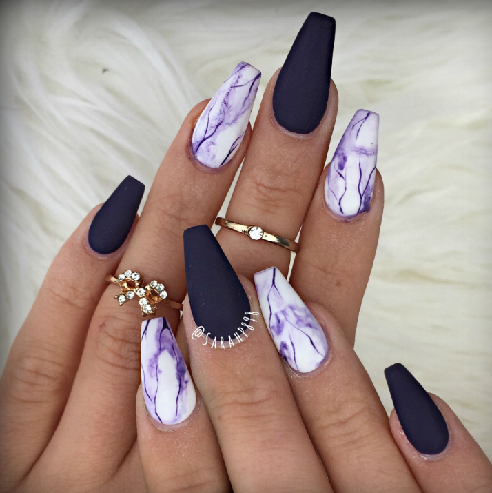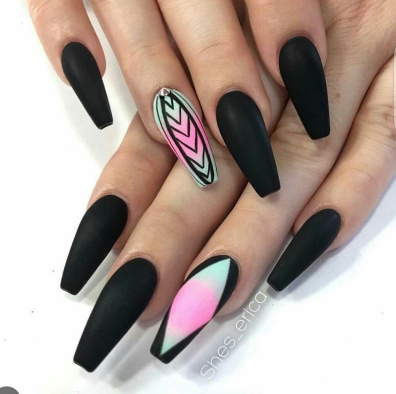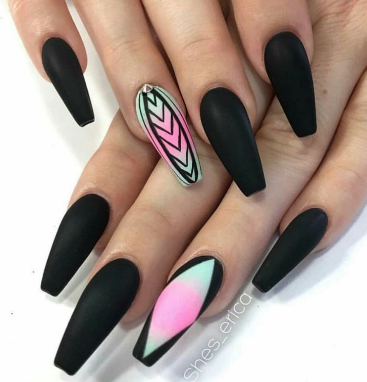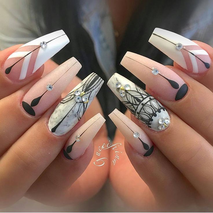 Длинные ногти — отличная база для балерины. такой маникюр смотрится утонченно и изящно. Если дополнить его актуальным дизайном, вы получите самый модный образ в сезоне.