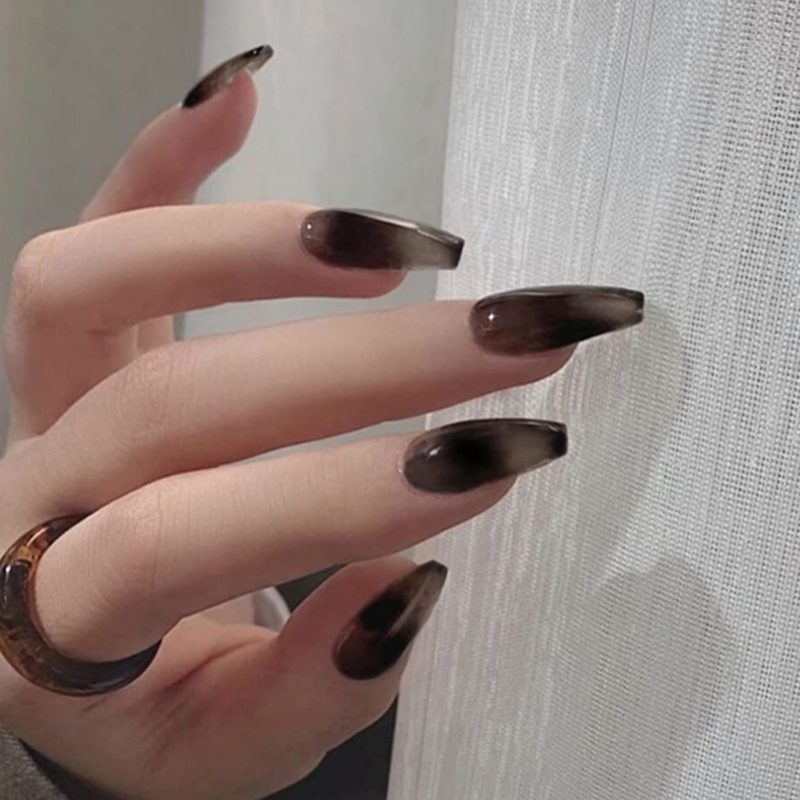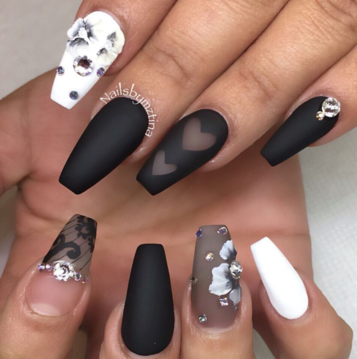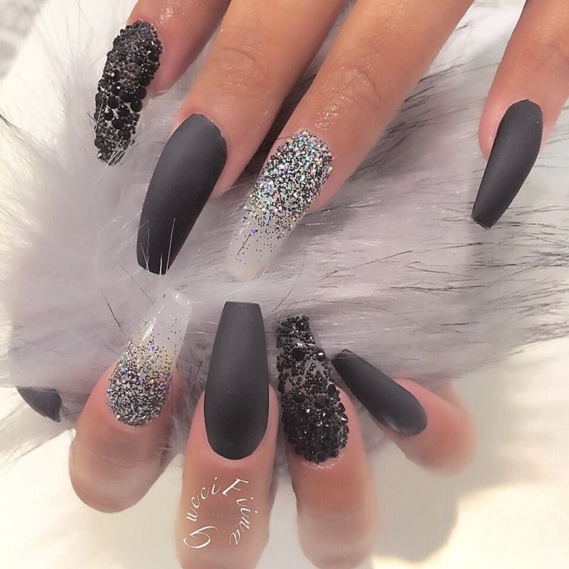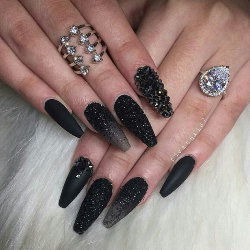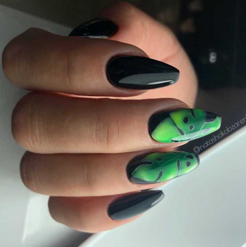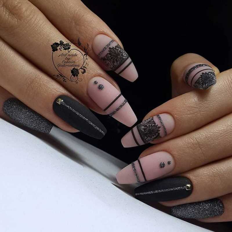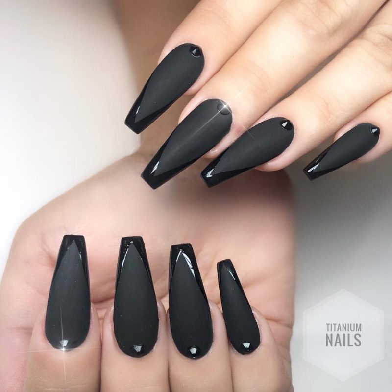 Черный оттенок лака долгое время воспринимался как непременный атрибут готов и неформалов. Но модницы быстро сообразили, что с его помощью можно сделать глубокий и стильный дизайн. Он подходит для любого образа и сезона. Да, даже летом можно красить ногти в черный цвет. Но это должен быть небольшой акцент. Актуальны в 2026 дизайны — черный френч, матовая текстура на балерине, дизайн со стразами, анималистичный принт, леттеринг.
