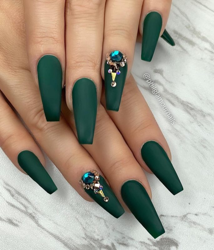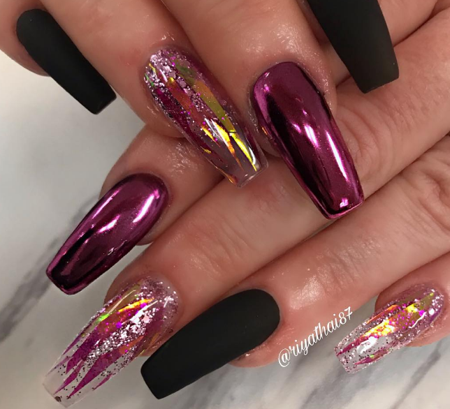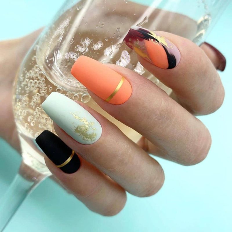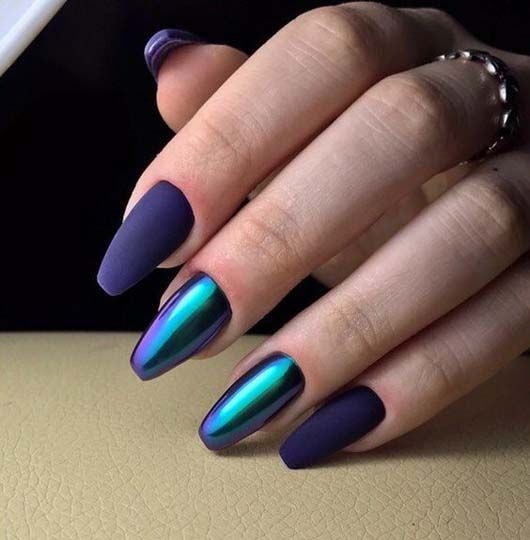 Матовая текстура не первый сезон находится на пике популярности. Бархатные ноготки смотрятся дорого и необычно, а в сочетании с необычной формой еще и очень стильно.