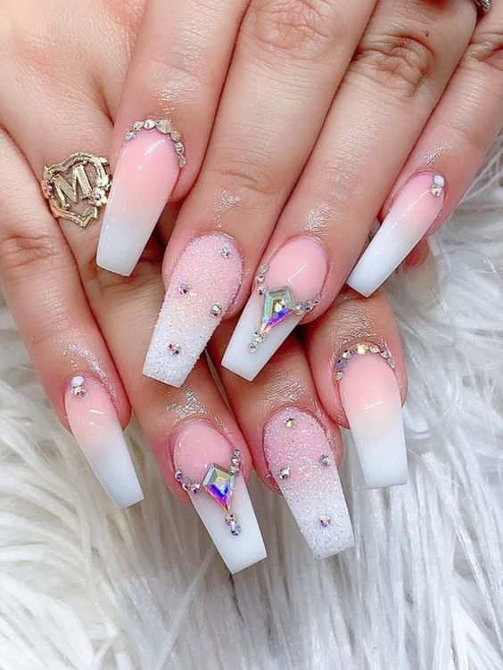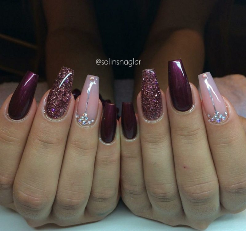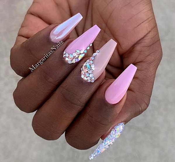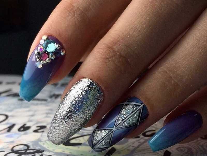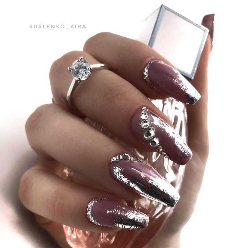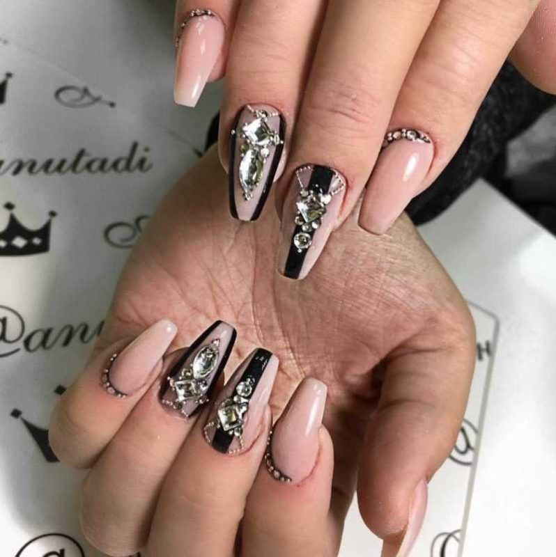 Балерина и стразы — гармоничный дуэт. Просто соблюдайте правила об умеренности. Если хочется интенсивного блеска — оформите один или два пальчика на руке. Если камни мелкие, можно украсить каждый ноготь, но аккуратно и без излишеств.