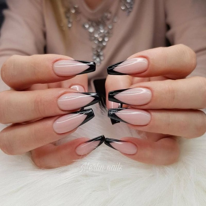 Черный френч — это трендовое направление дизайна в маникюре. Черная улыбка настолько необычна, что полюбилась множеству модниц. Те, кто думает, что это слишком мрачно и скучно — ошибаются. Черный френч — это стильно, необычно и уникально. Выбирайте любую форму каймы, украшайте его стразами, геометрическим рисунком или сочетайте матовую и глянцевую текстуры.