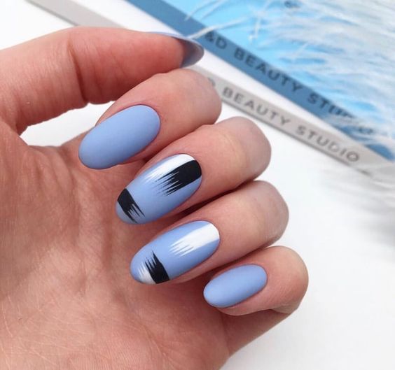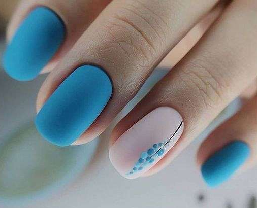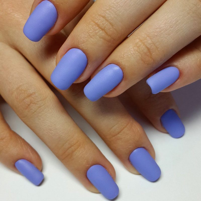 Густой и насыщенный цвет августовского чистого неба. Он красив и эффектен сам по себе. Вы можете обойтись минималистичным дизайном и сделать маникюр только с матовым покрытием или соединить все перечисленные цвета в одно модное омбре.