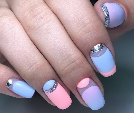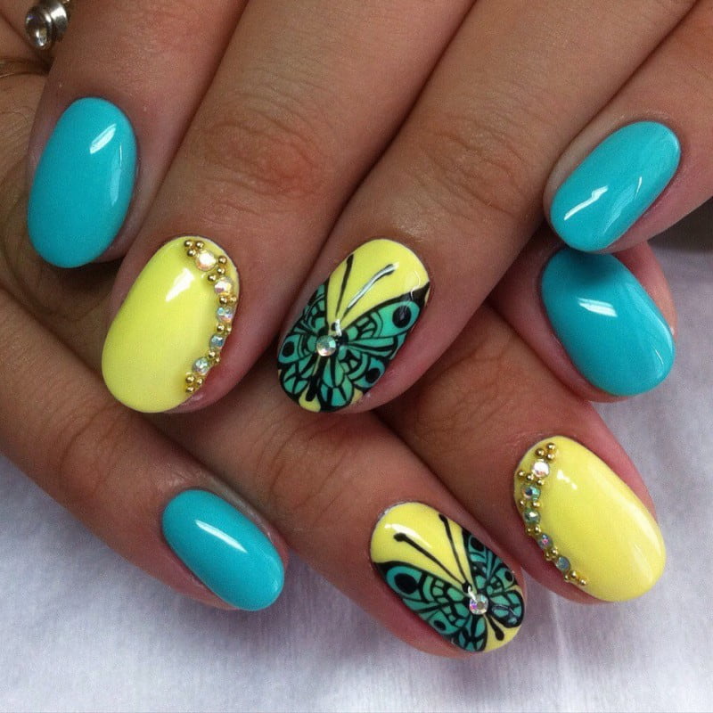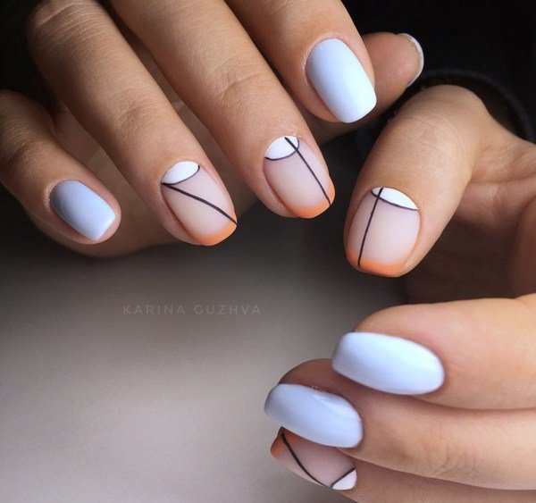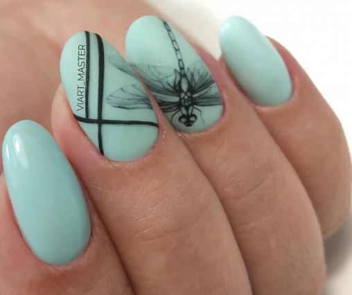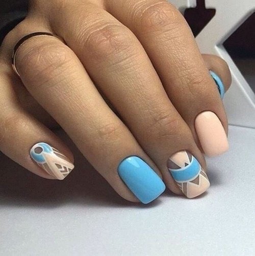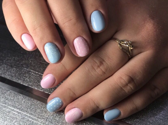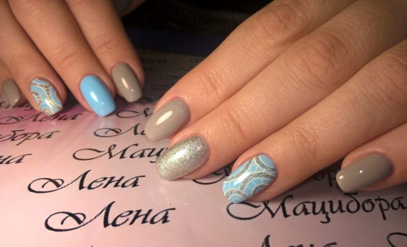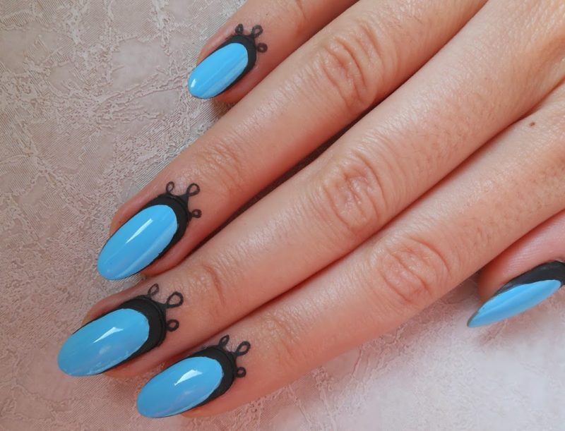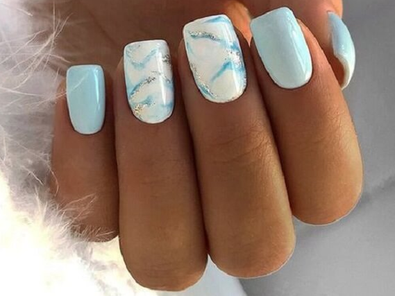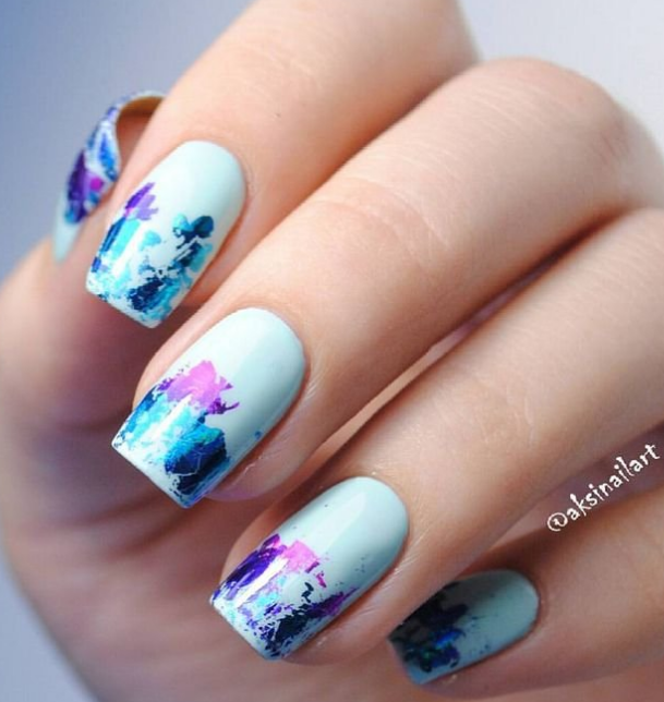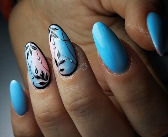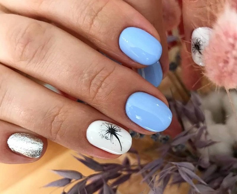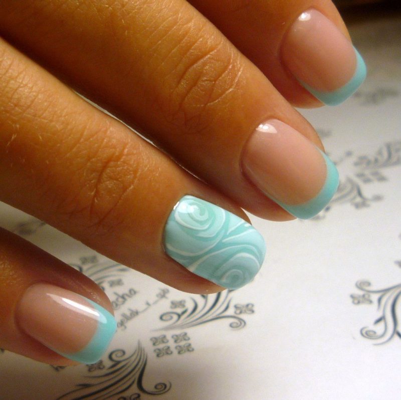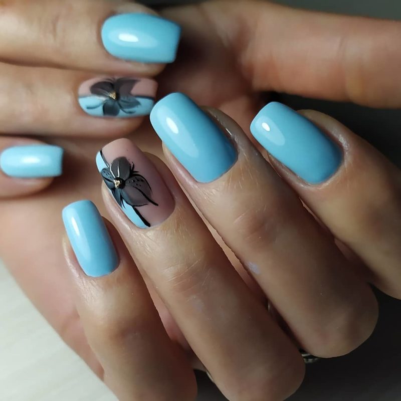 Голубой цвет сочетается практически с любыми оттенками палитры. Конечно, есть наиболее удачные тандемы, которые с успехом применяют мастера нейл-арта.