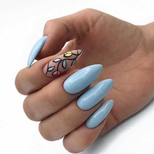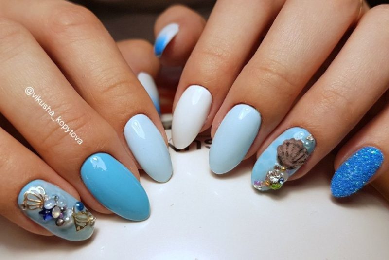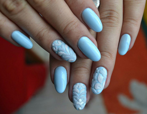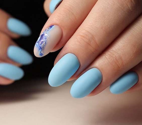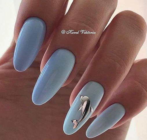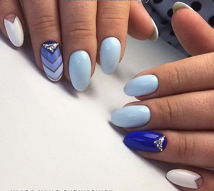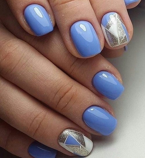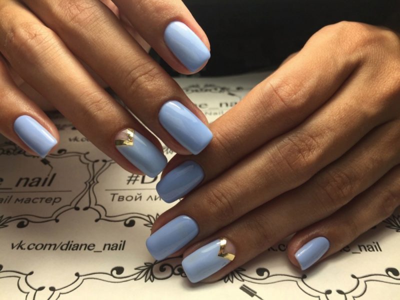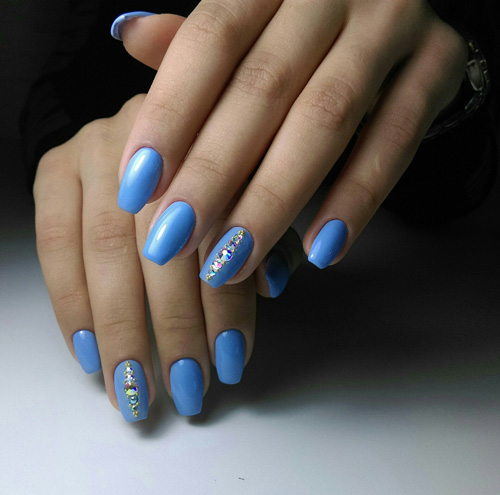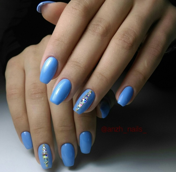 Как уже отмечалось, голубой гель-лак подойдет для разной длины ногтей. Не имеет особого значения и форма пластины. Вы можете выбрать ту, которая вам больше нравится или ту, которая считается особо актуальной в этом сезоне.