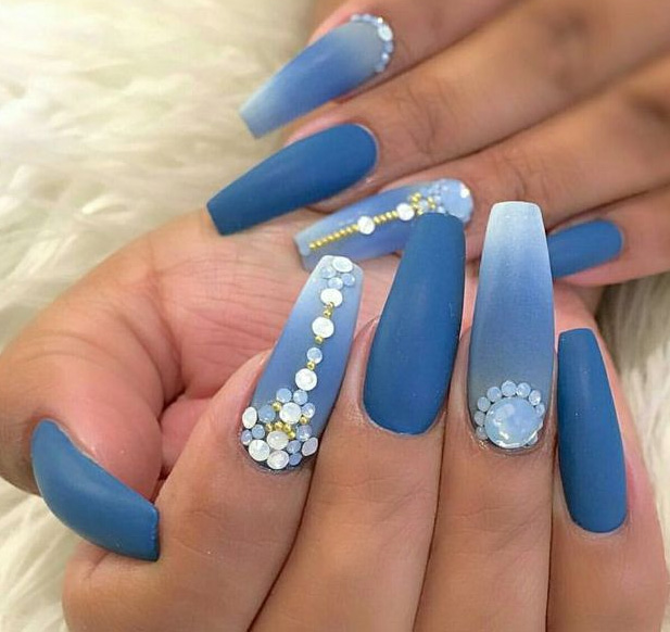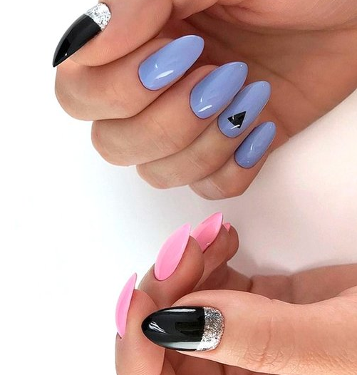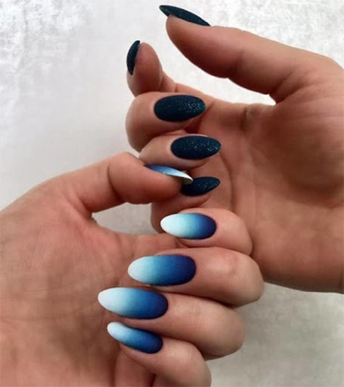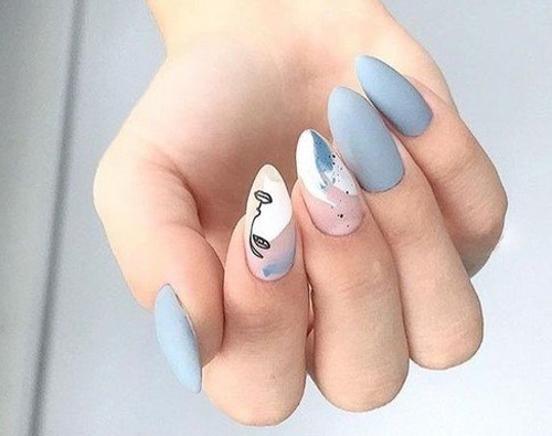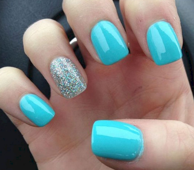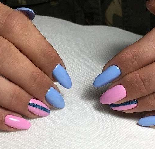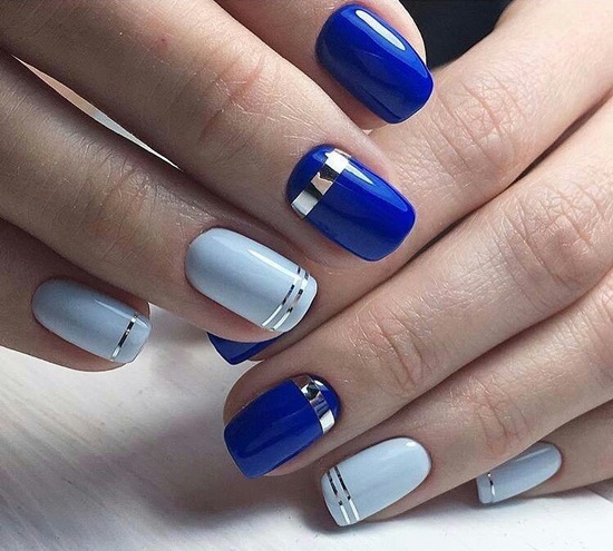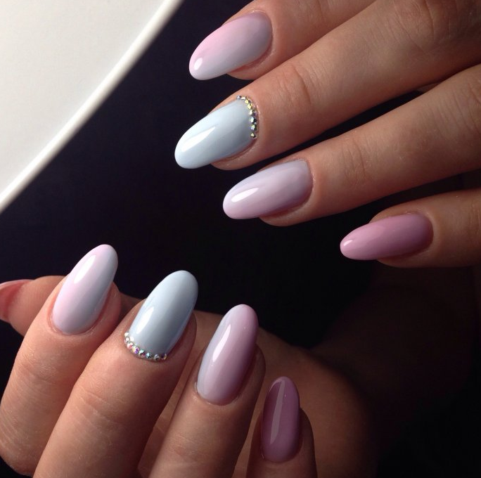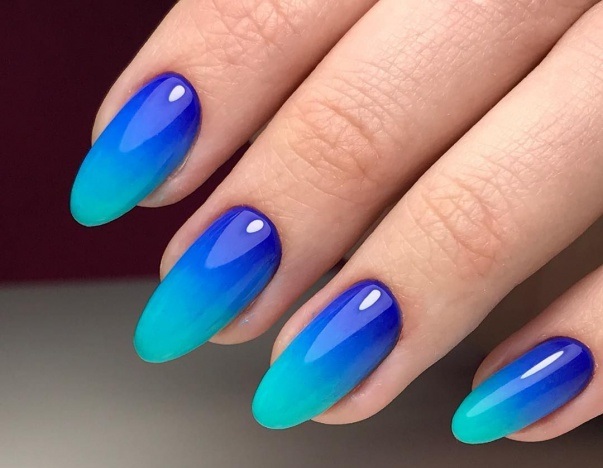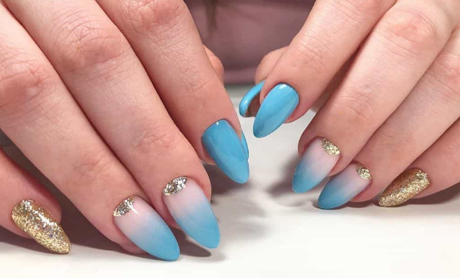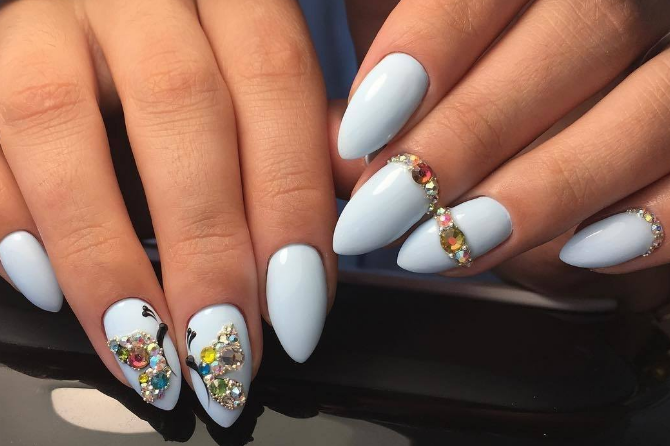 Как уже отмечалось, голубой гель-лак подойдет для разной длины ногтей. Не имеет особого значения и форма пластины. Вы можете выбрать ту, которая вам больше нравится или ту, которая считается особо актуальной в этом сезоне.