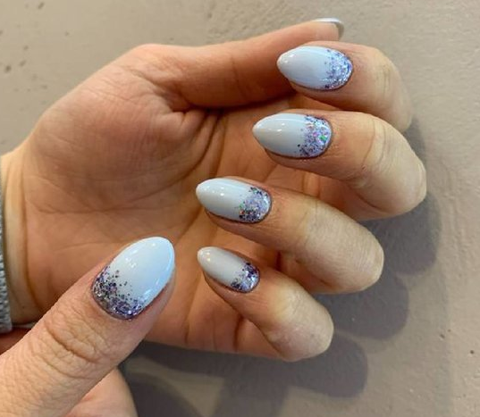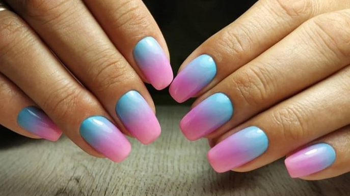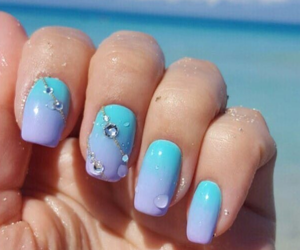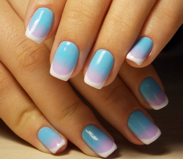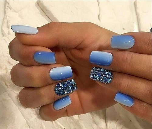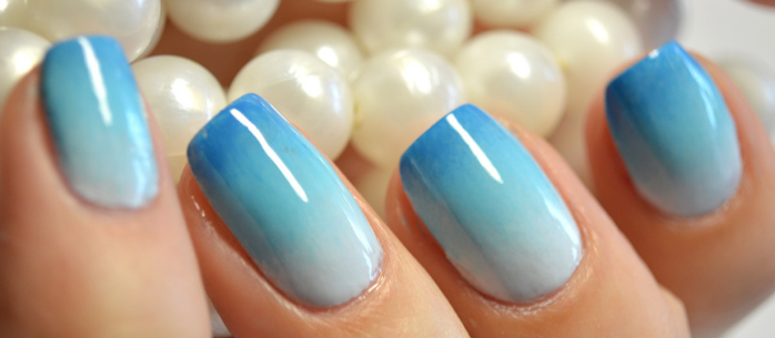Особенно нежно смотрятся такие переходы с использованием голубой палитры. Выбирайте с какого тона начать градиент — с более светлого или, наоборот, темного. А может быть начать стоит вообще с молочного или прозрачного лака.
