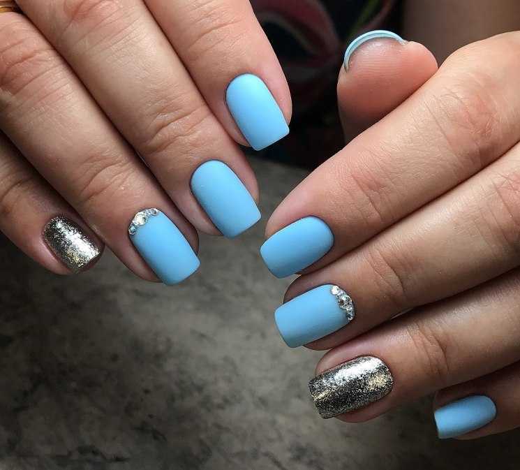 Актуальные идеи маникюра с голубым лаком 2026 — фото