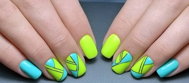 Совет: если планируете использовать в дизайне неоновый оттенок голубого, обязательно уравновесьте его пыльной розой. Так оформление ногтей будет женственным и не слишком кислотным.