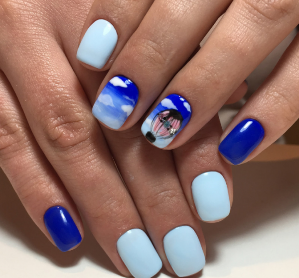 Один из самых модных вариантов сезона 2026 является маникюр с дизайном “небо” и разные руки.