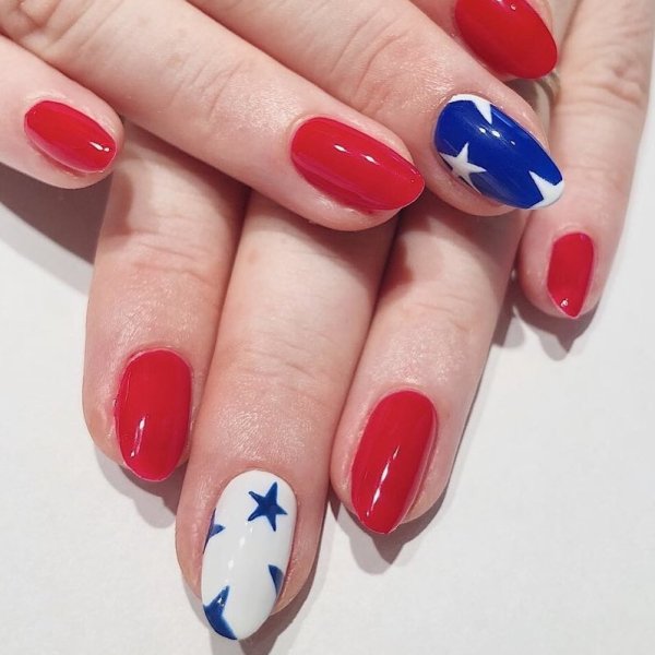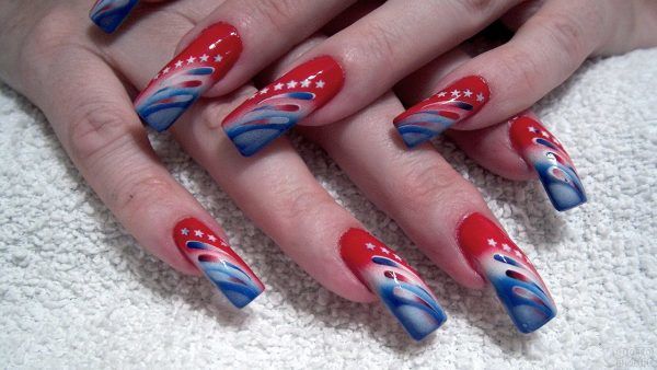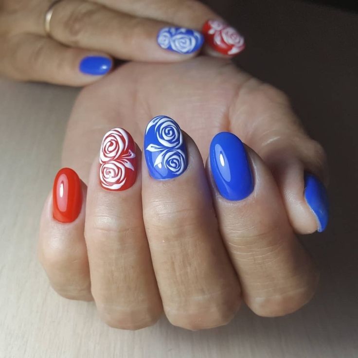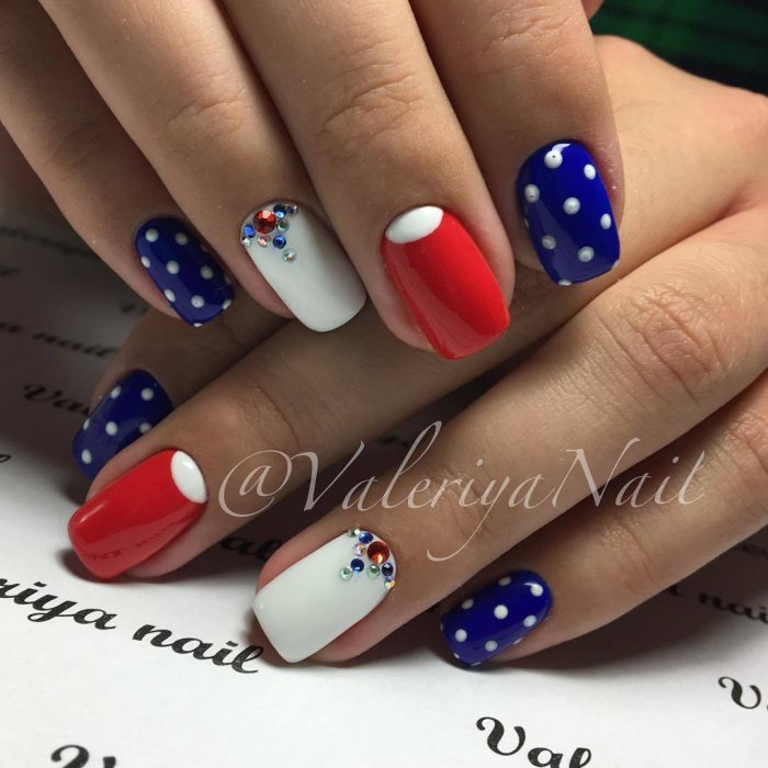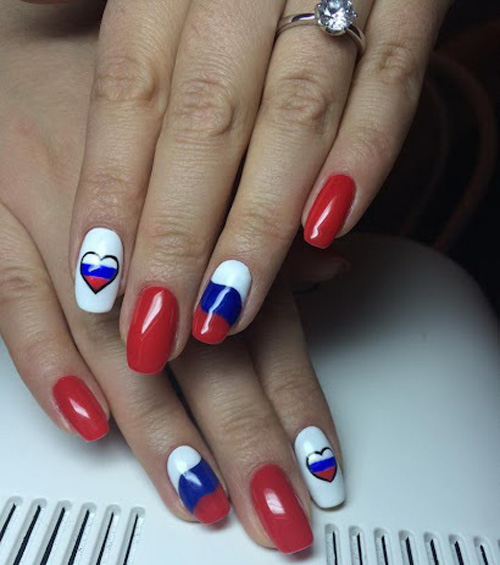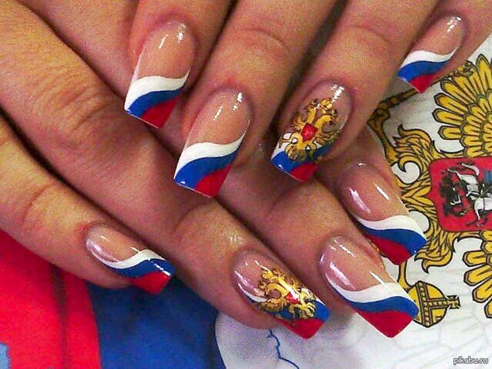 Иногда маникюр в указанных оттенках выполняют на патриотические праздники.