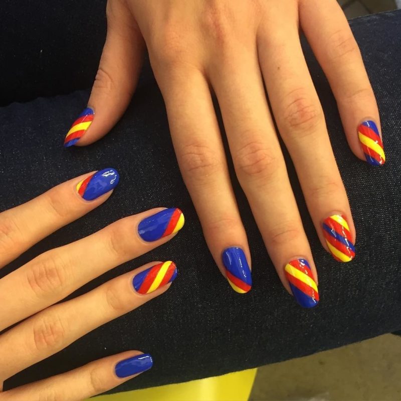 Кому подойдет красно-синий маникюр?