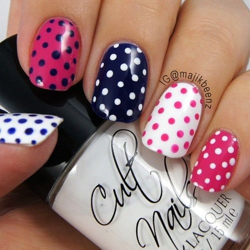 Мода на горошек не пропадает. Он может быть как крупным, так и мелким. Маникюр можно выполнить в романтичном стиле, ненавязчивый, или со стразами.