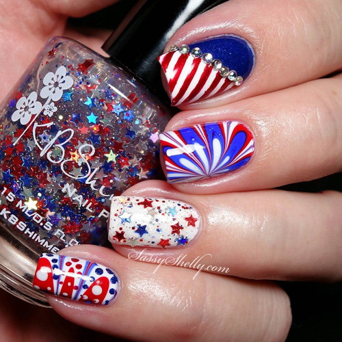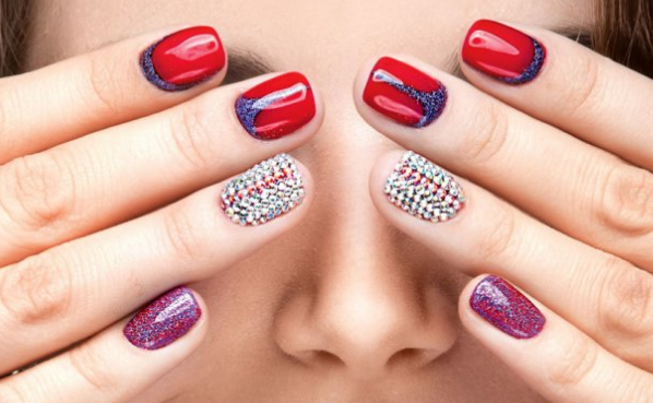 - сочетать глиттер и красно-синюю гамму;