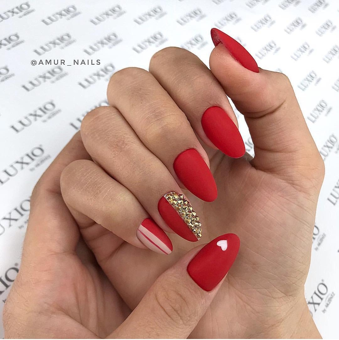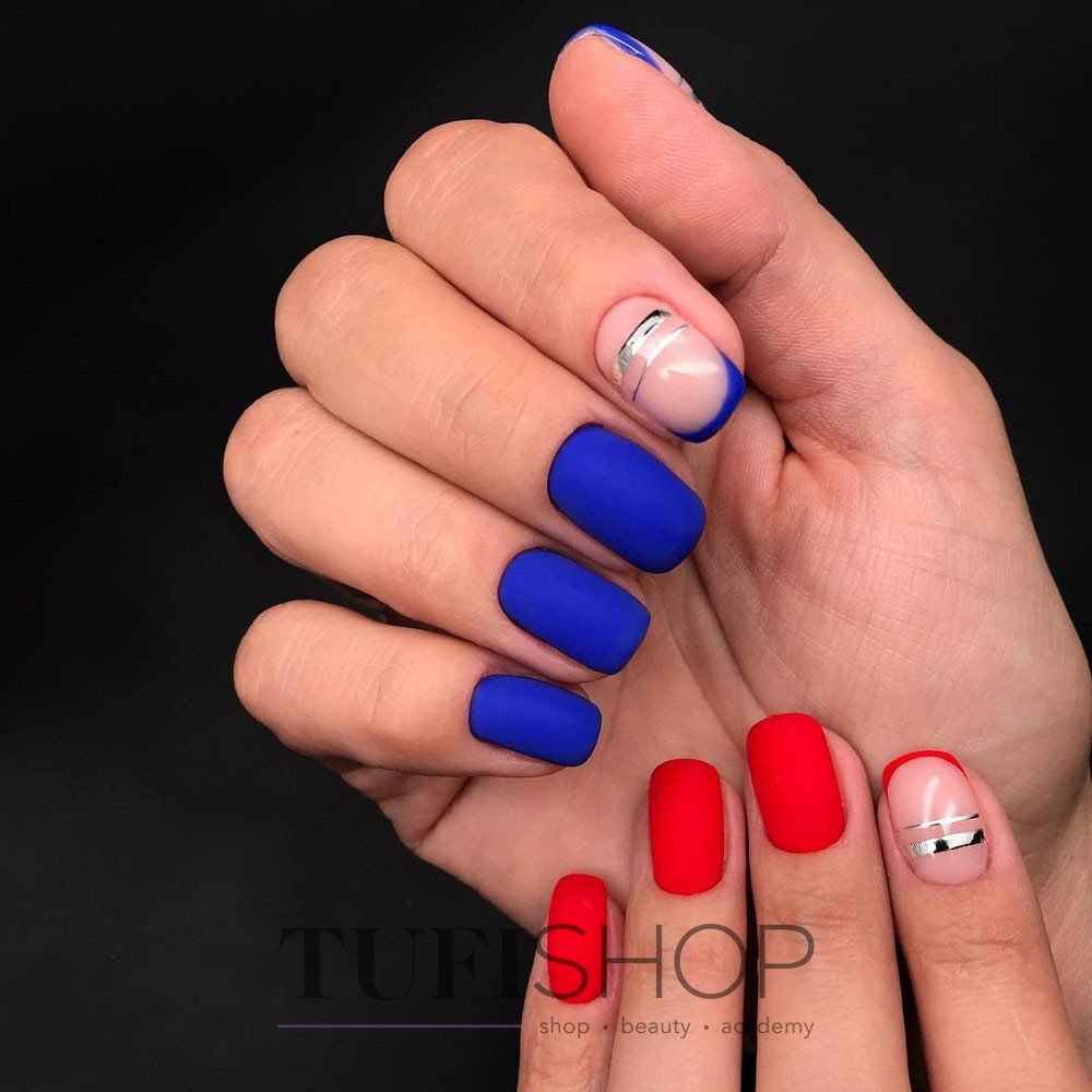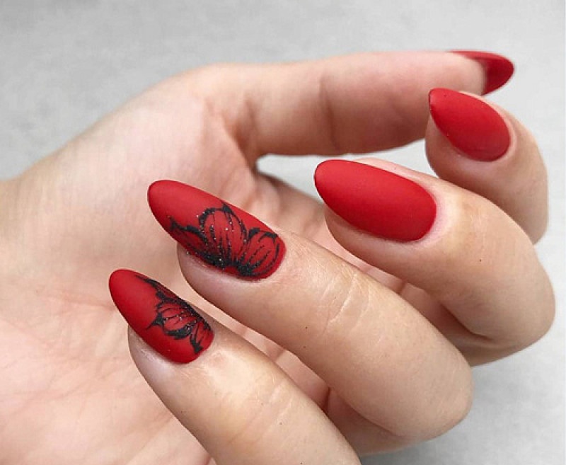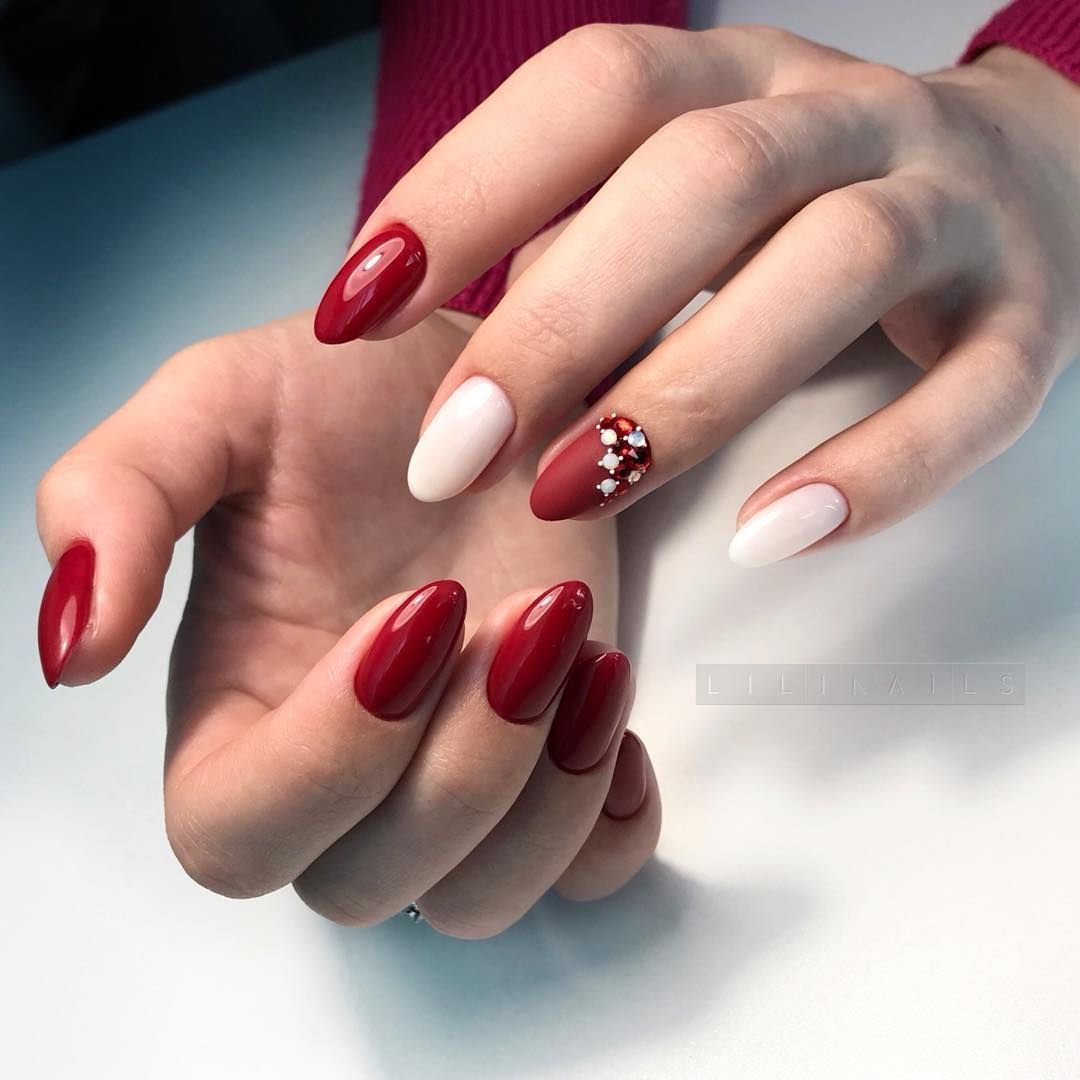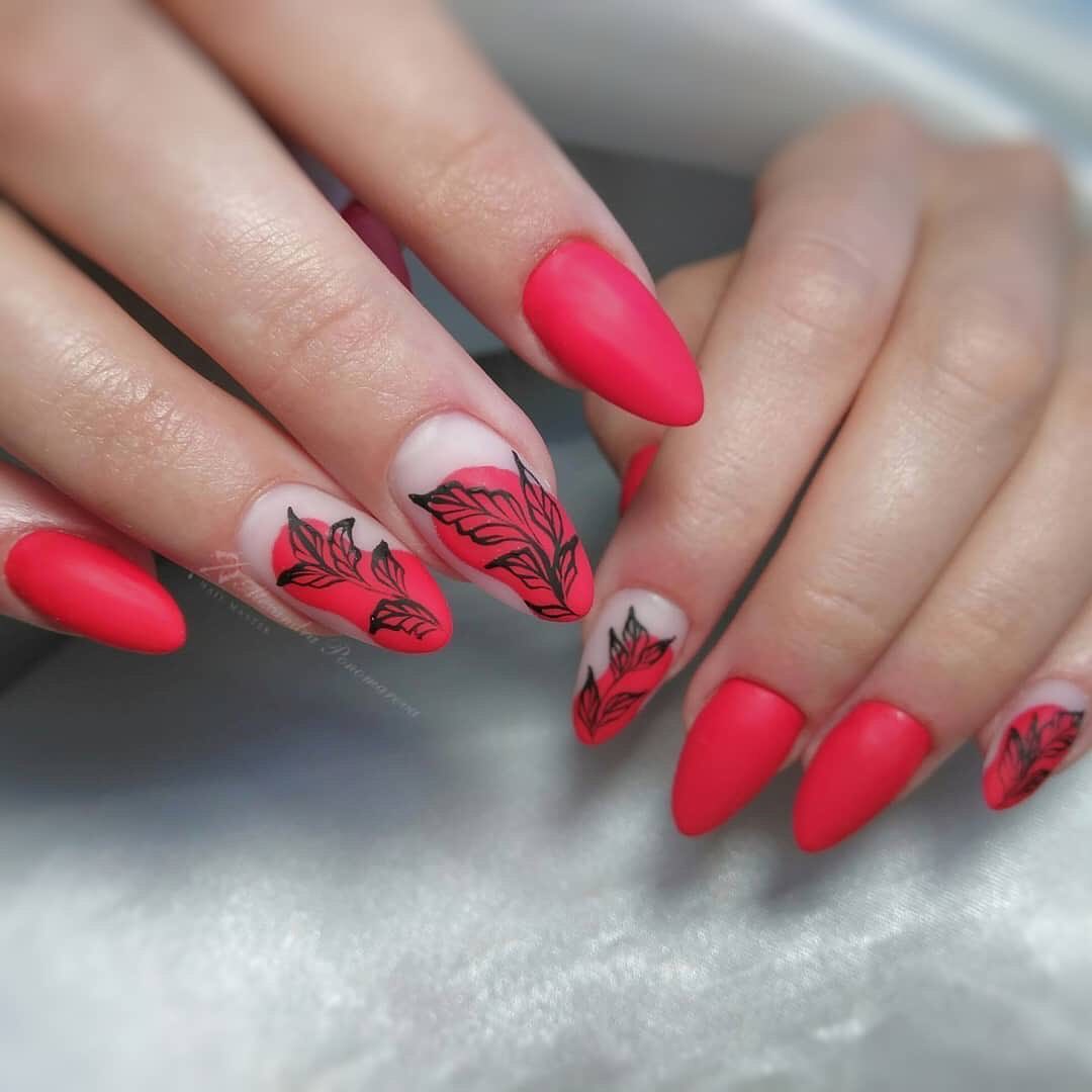 Матовая текстура актуальна, как никогда. Конечно, глянцевая не сдает своих позиций, но матовая делает красные ноготки более стильными и очень ухоженными. Маникюр выглядит дорого. Если вы не можете определиться, какую текстуру выбрать, отдайте предпочтение матовой. Но для создания более эффектного дизайна мы рекомендуем сочетать сразу две — глянцевую и матовую. Например, чередованием или сделать маникюр в стиле разные руки. Когда ногти на одной руке оформлены глянцевым топом, а на другой — сделано матовое покрытие.