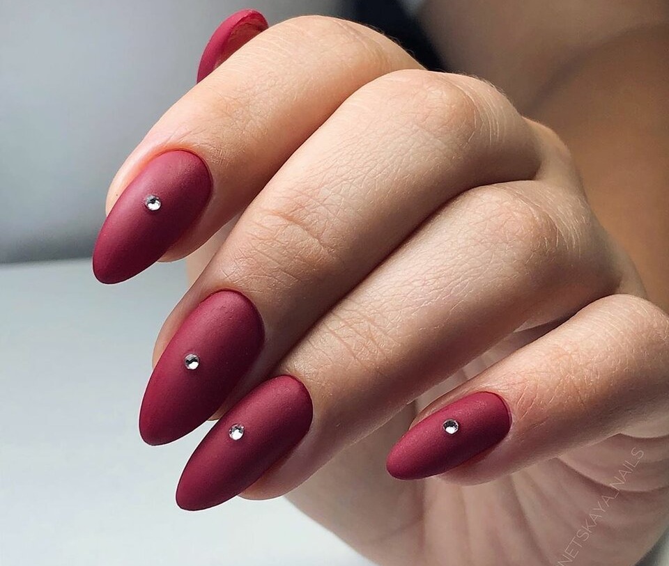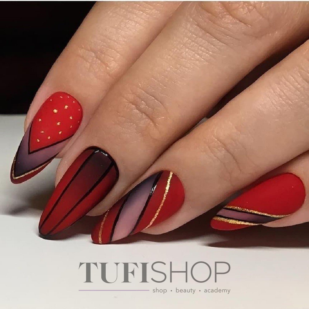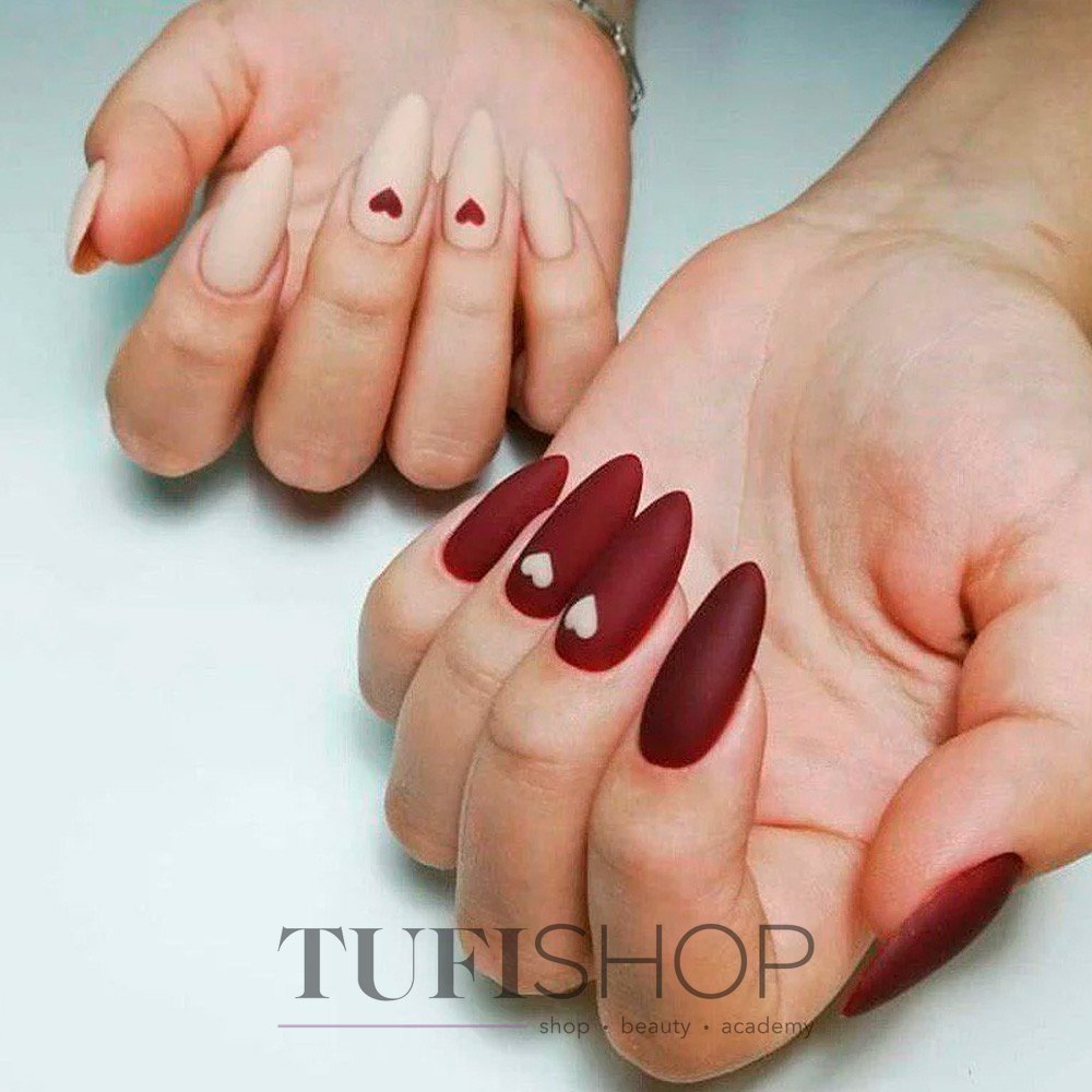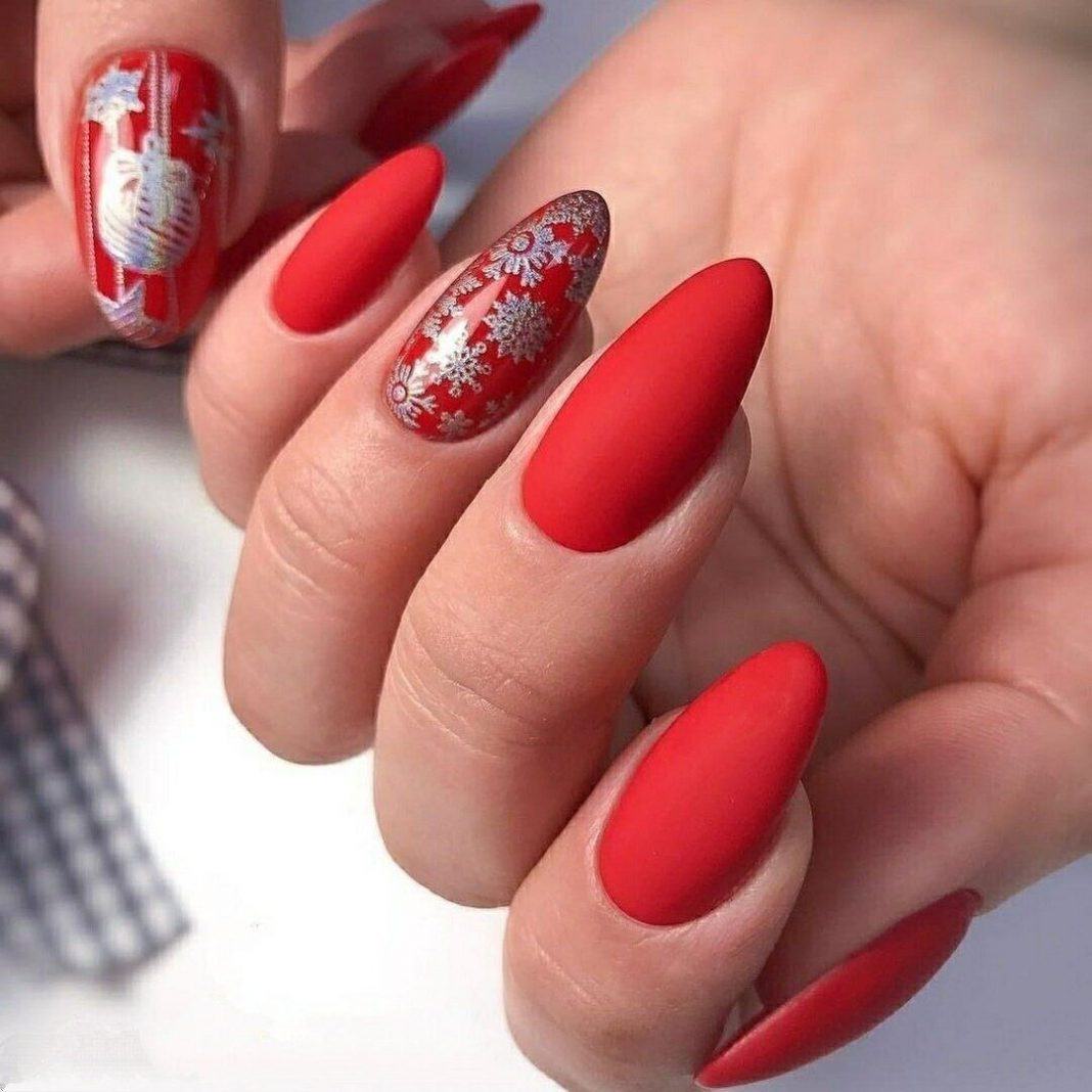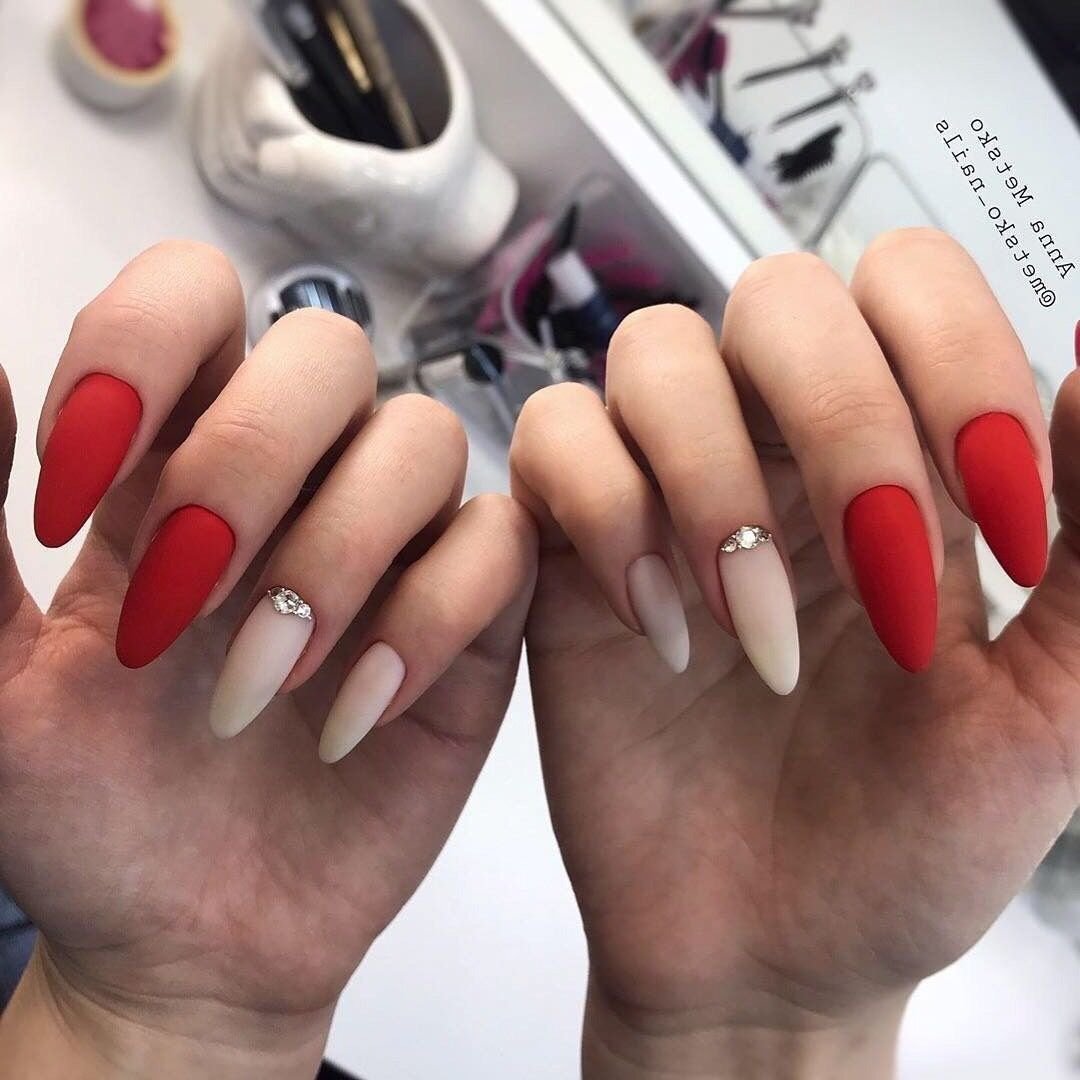 Матовая текстура актуальна, как никогда. Конечно, глянцевая не сдает своих позиций, но матовая делает красные ноготки более стильными и очень ухоженными. Маникюр выглядит дорого. Если вы не можете определиться, какую текстуру выбрать, отдайте предпочтение матовой. Но для создания более эффектного дизайна мы рекомендуем сочетать сразу две — глянцевую и матовую. Например, чередованием или сделать маникюр в стиле разные руки. Когда ногти на одной руке оформлены глянцевым топом, а на другой — сделано матовое покрытие.