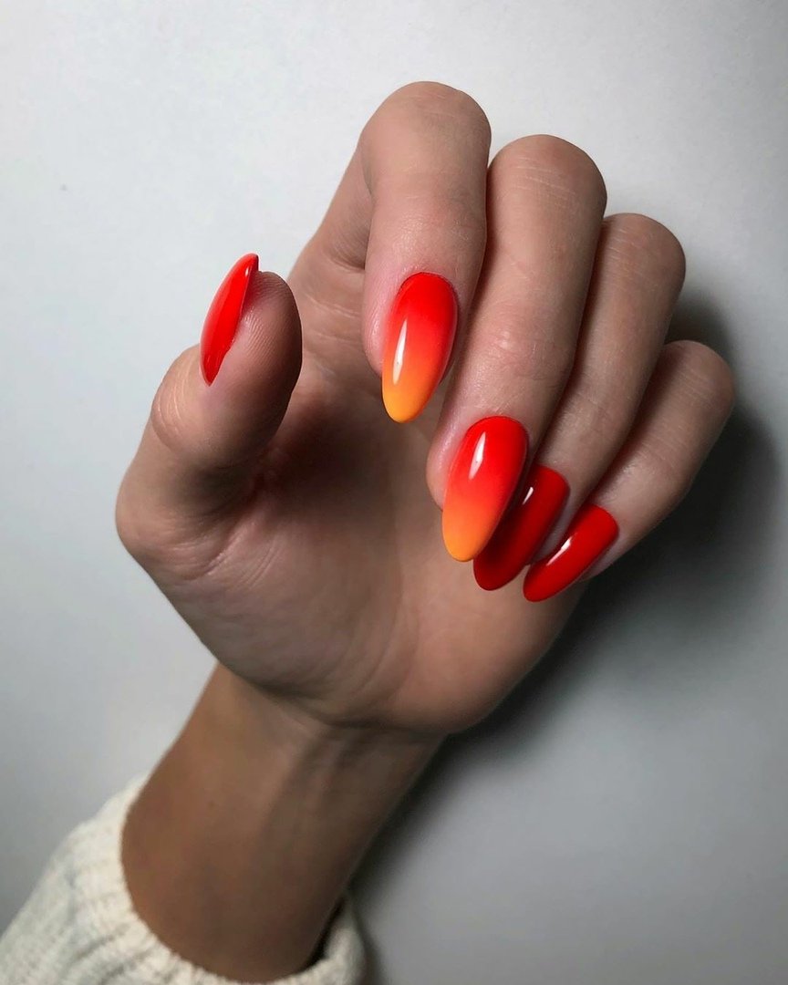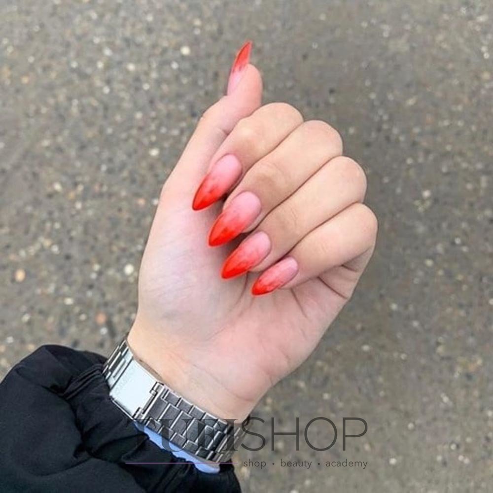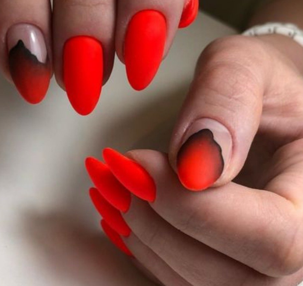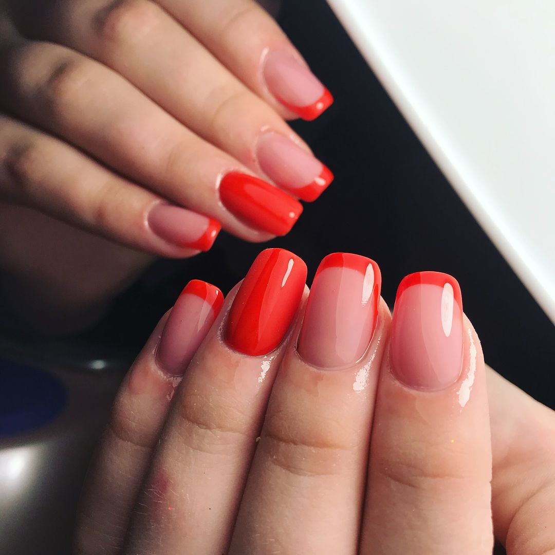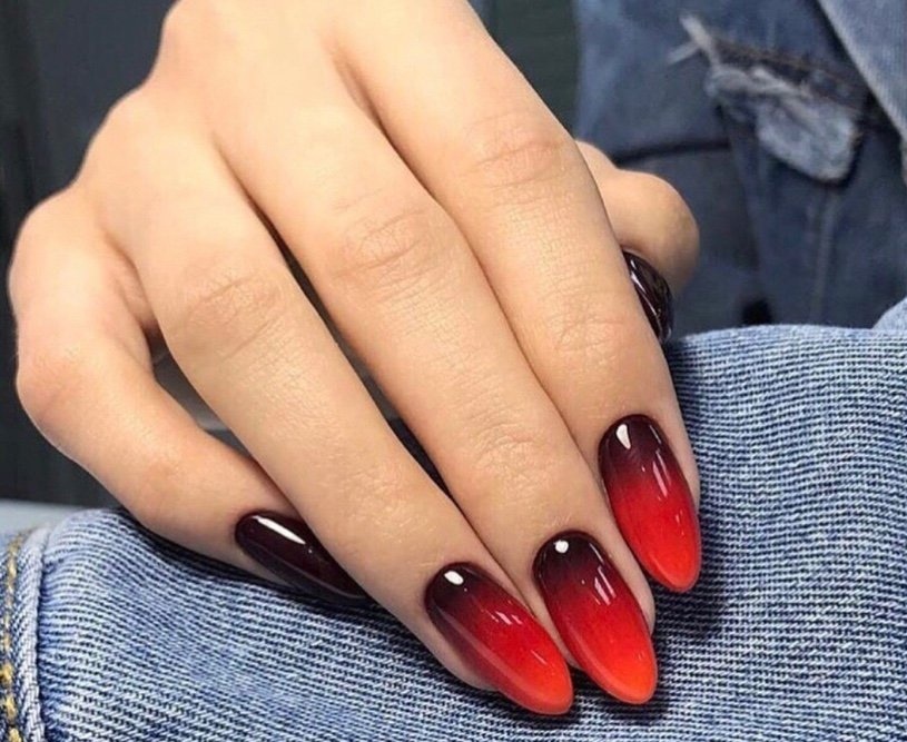 Техника омбре — одна из самых популярных в маникюре. Что означает в переводе с французского? Значение — затемнение. В этом вся суть дизайна ногтей — плавный переход оттенков от более светлого к темному. Красный маникюр в этой технике смотрится особенно эффектно. Стильно и нежно смотрится переход от красного к белому, от красного к розовому или от винного к черному.