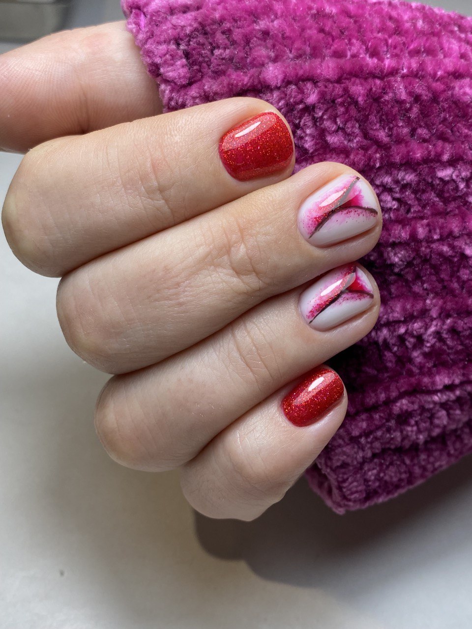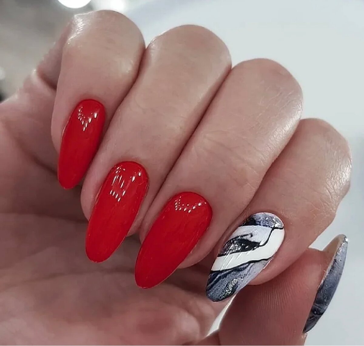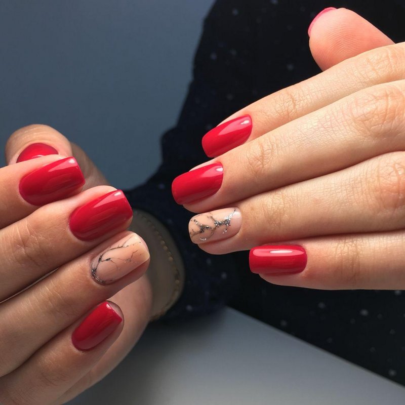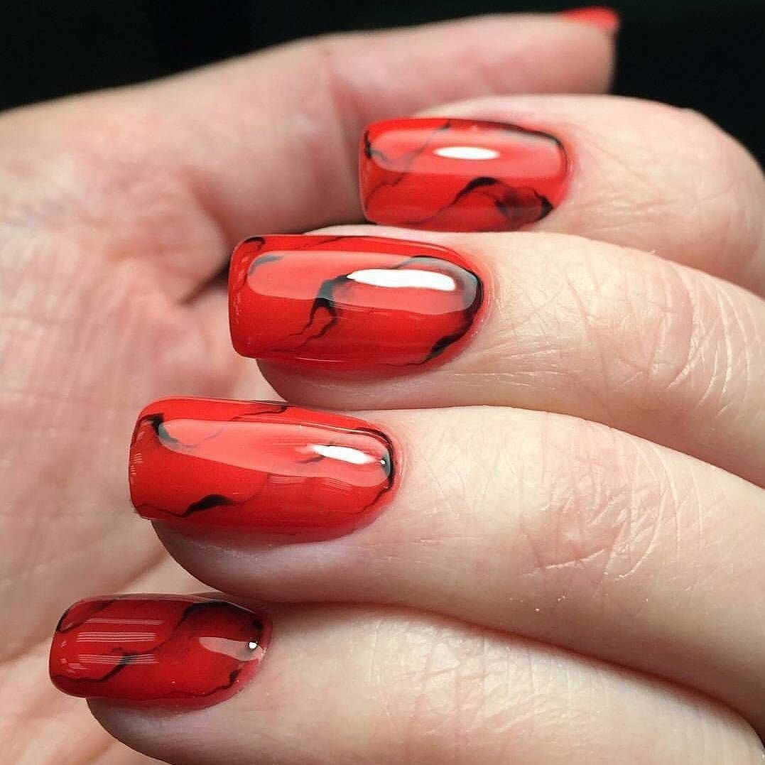 - Мраморный красный маникюр
