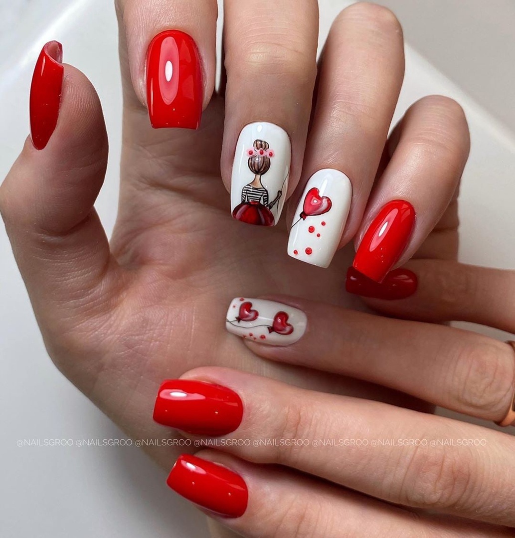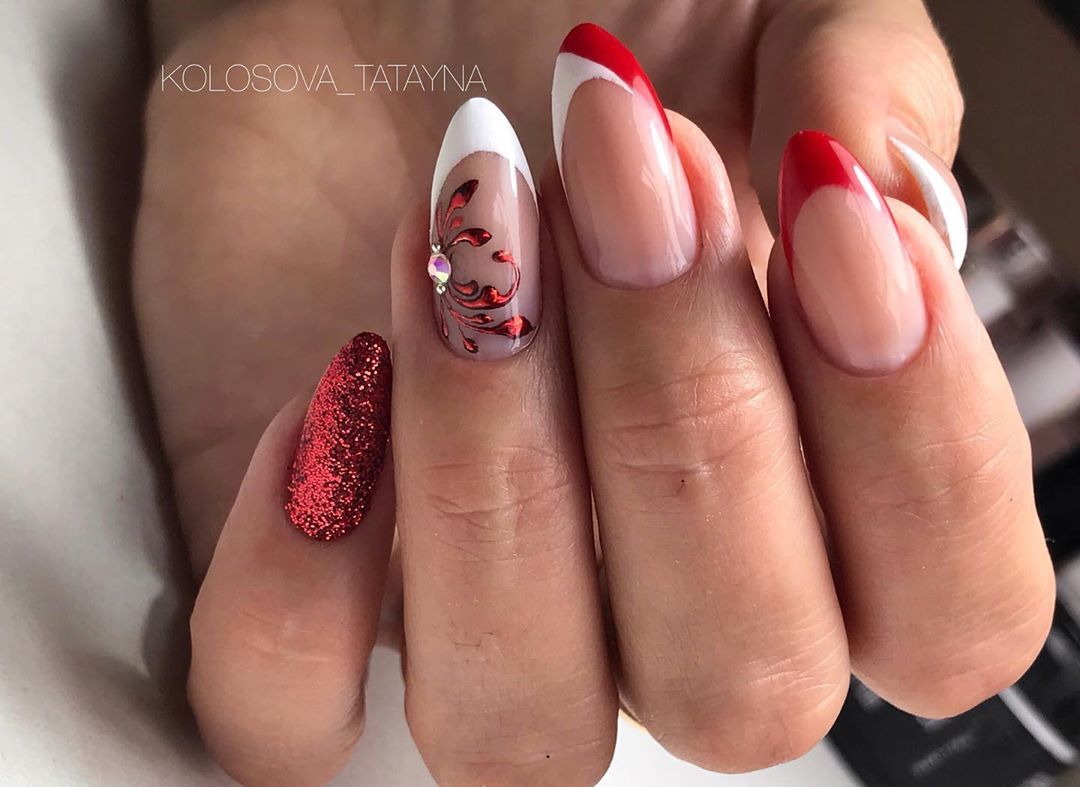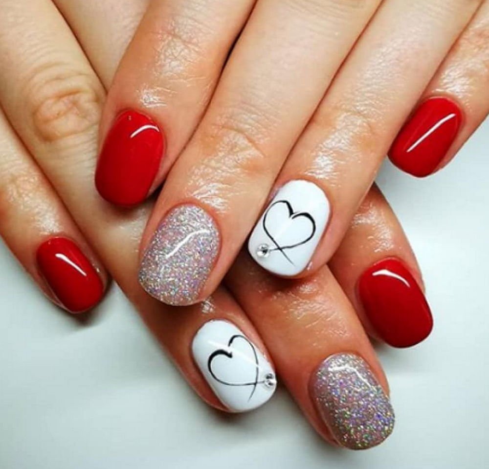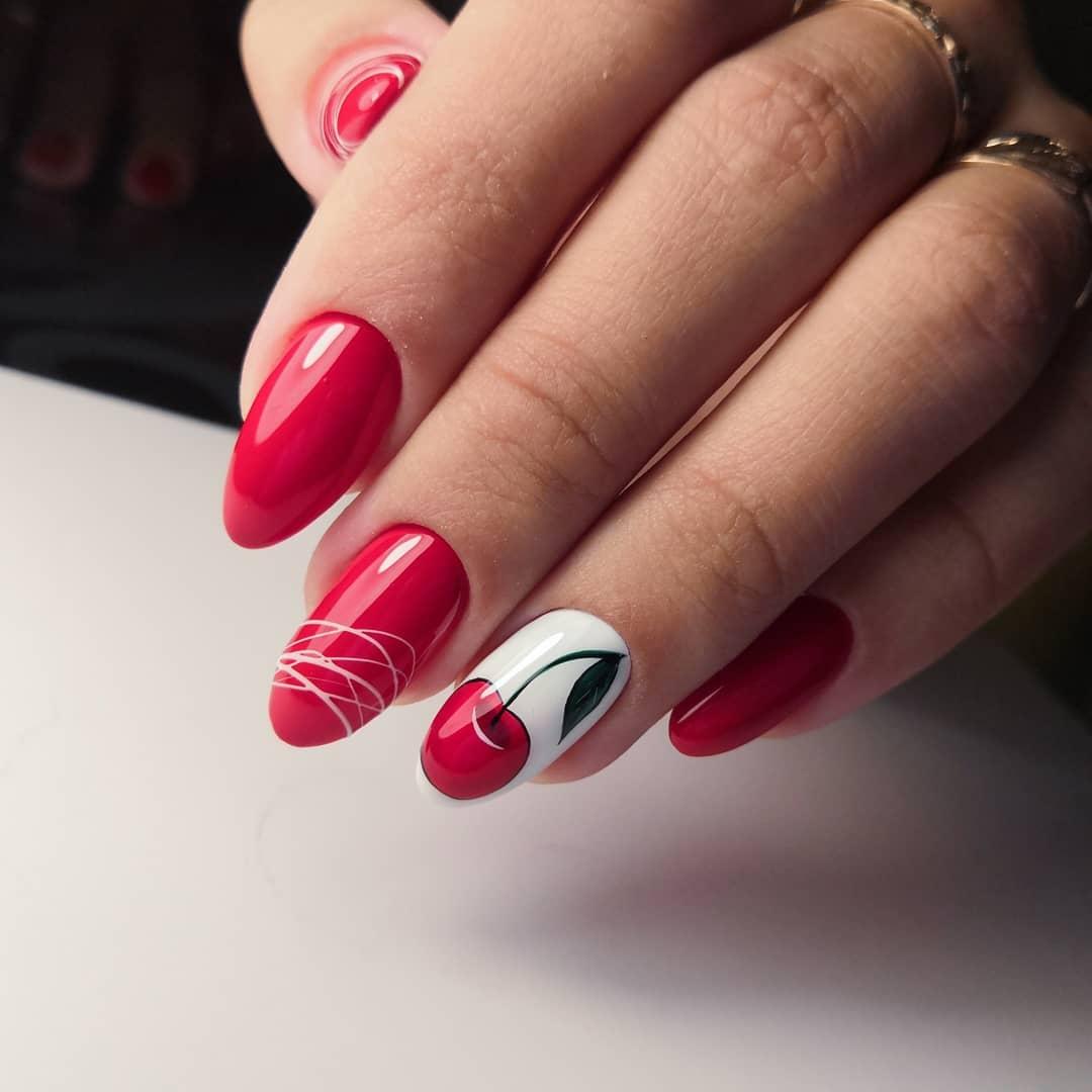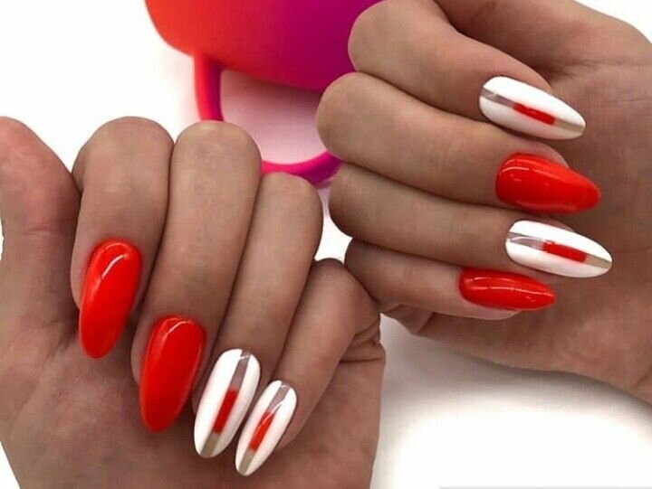 - белый. Такое сочетание смотрится свежо и очень элегантно. Белый добавляют в том случае, если хотят сделать маникюр более романтичным и немного приглушить страстный и активный красный цвет;