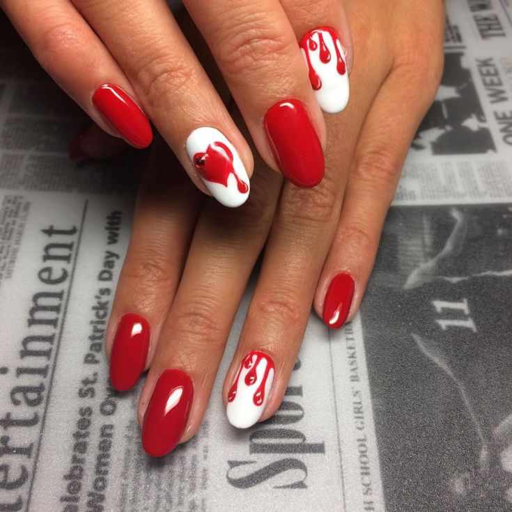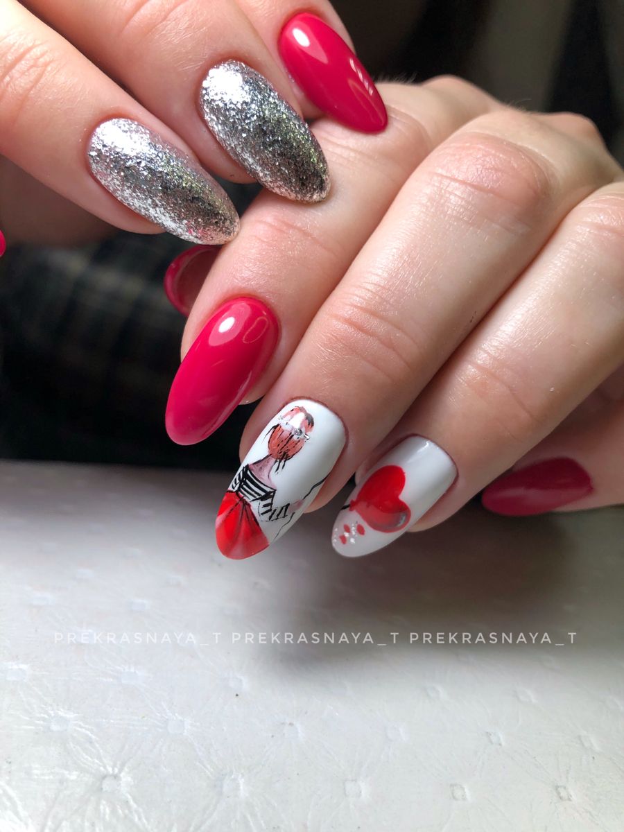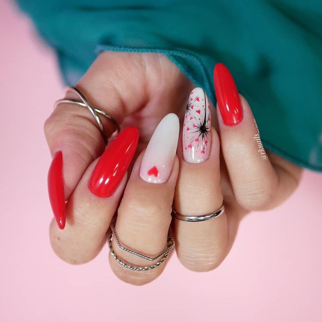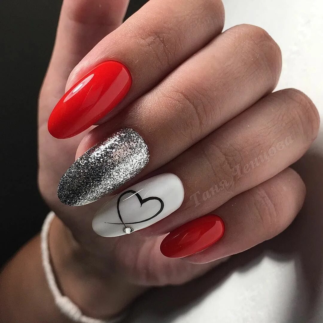 - белый. Такое сочетание смотрится свежо и очень элегантно. Белый добавляют в том случае, если хотят сделать маникюр более романтичным и немного приглушить страстный и активный красный цвет;