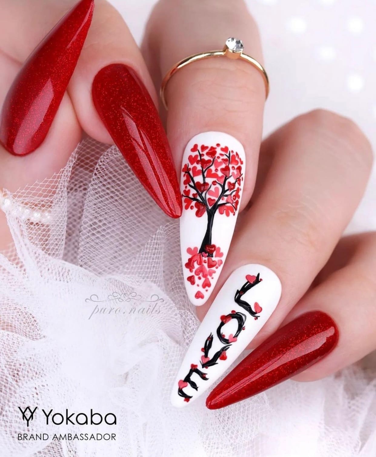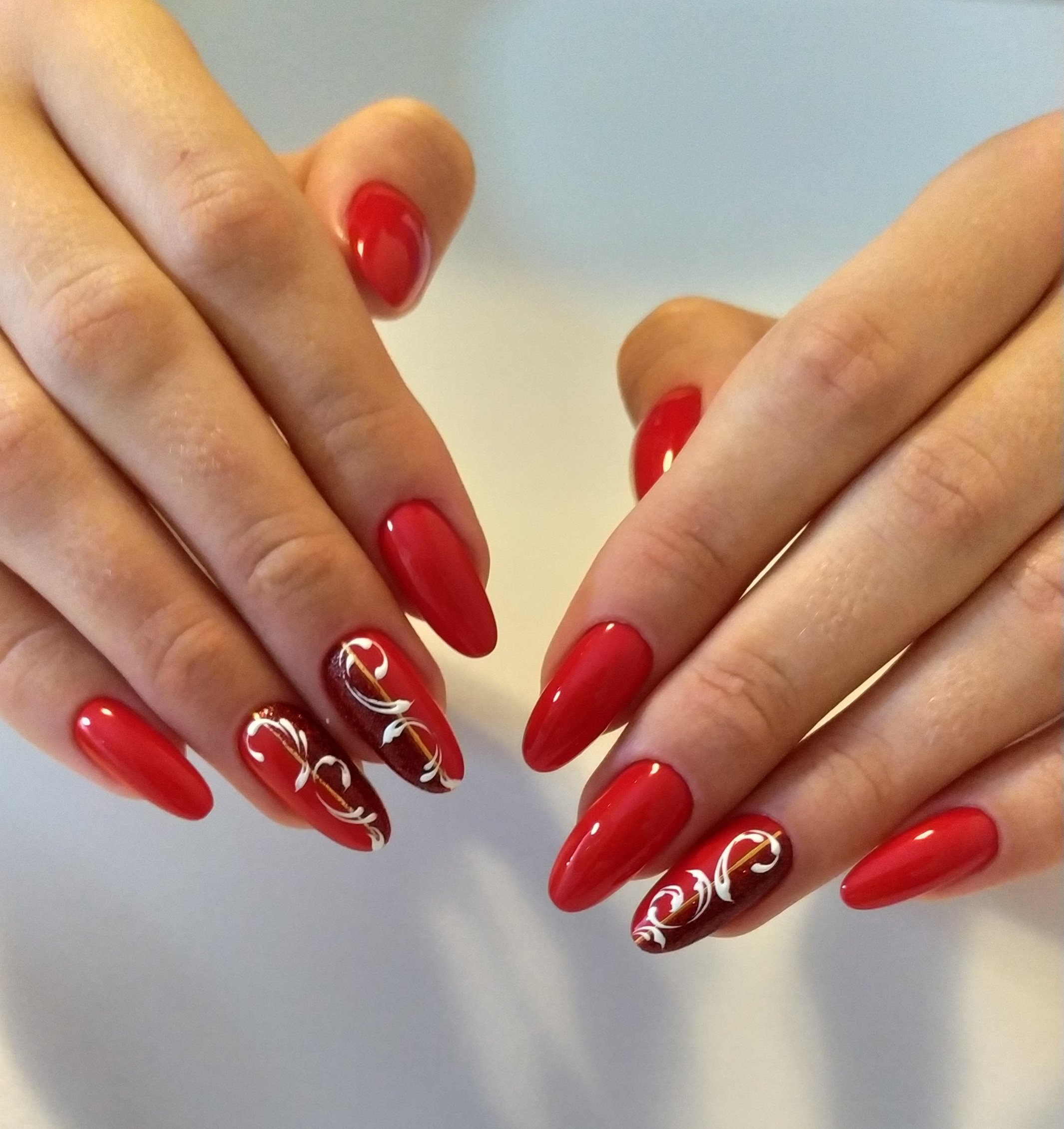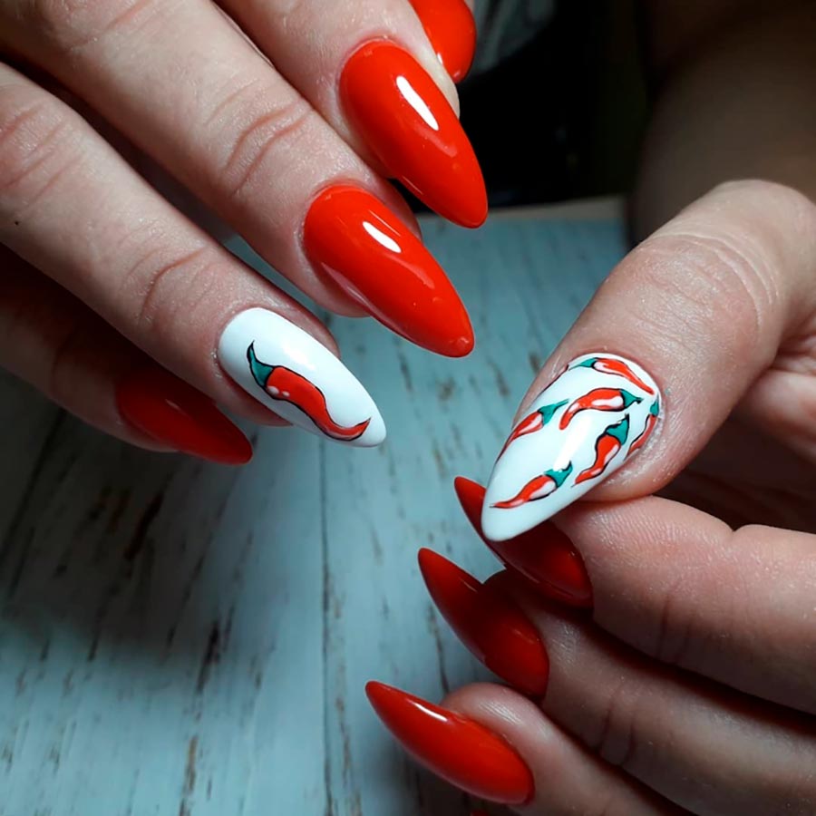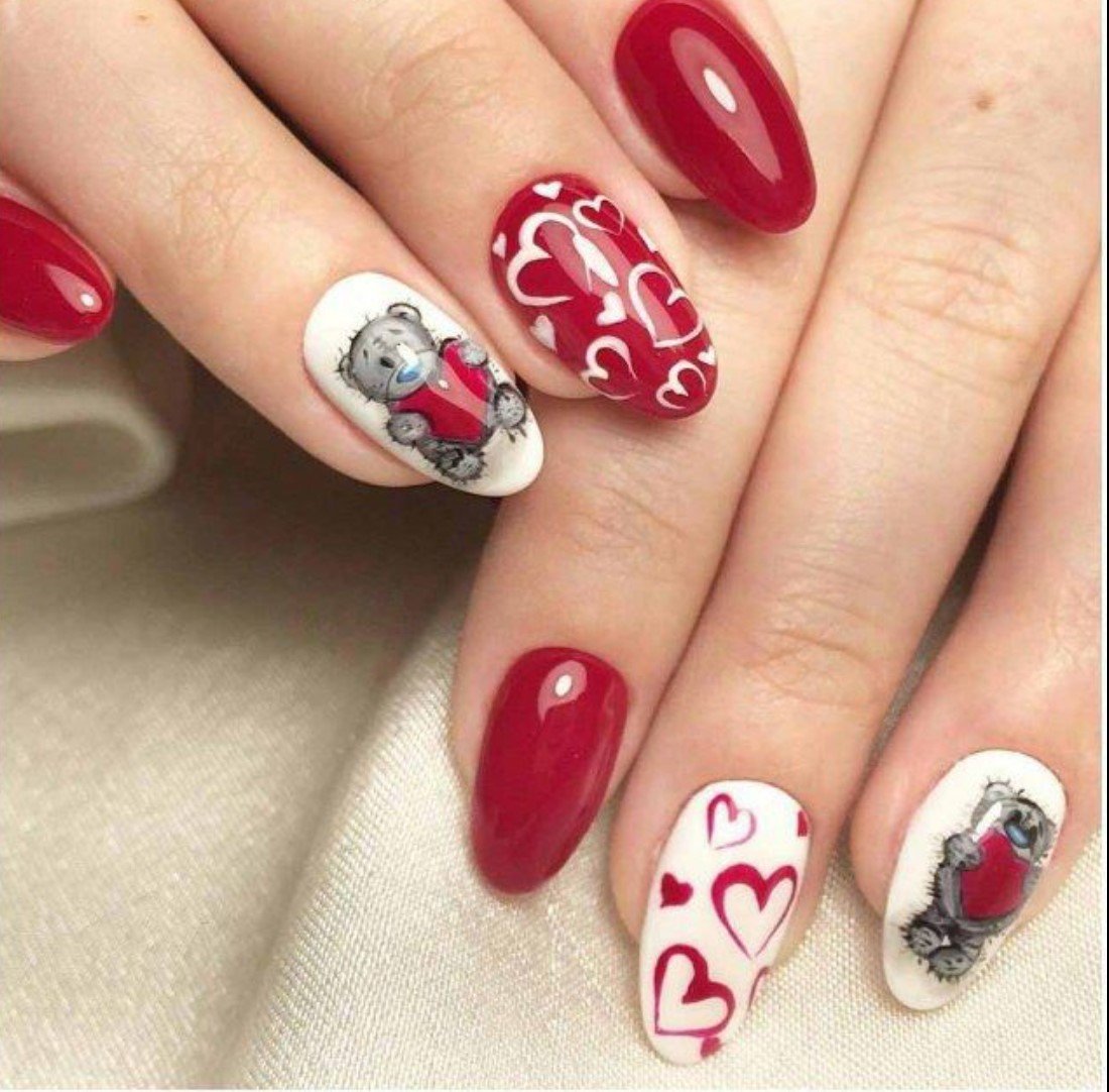 - белый. Такое сочетание смотрится свежо и очень элегантно. Белый добавляют в том случае, если хотят сделать маникюр более романтичным и немного приглушить страстный и активный красный цвет;