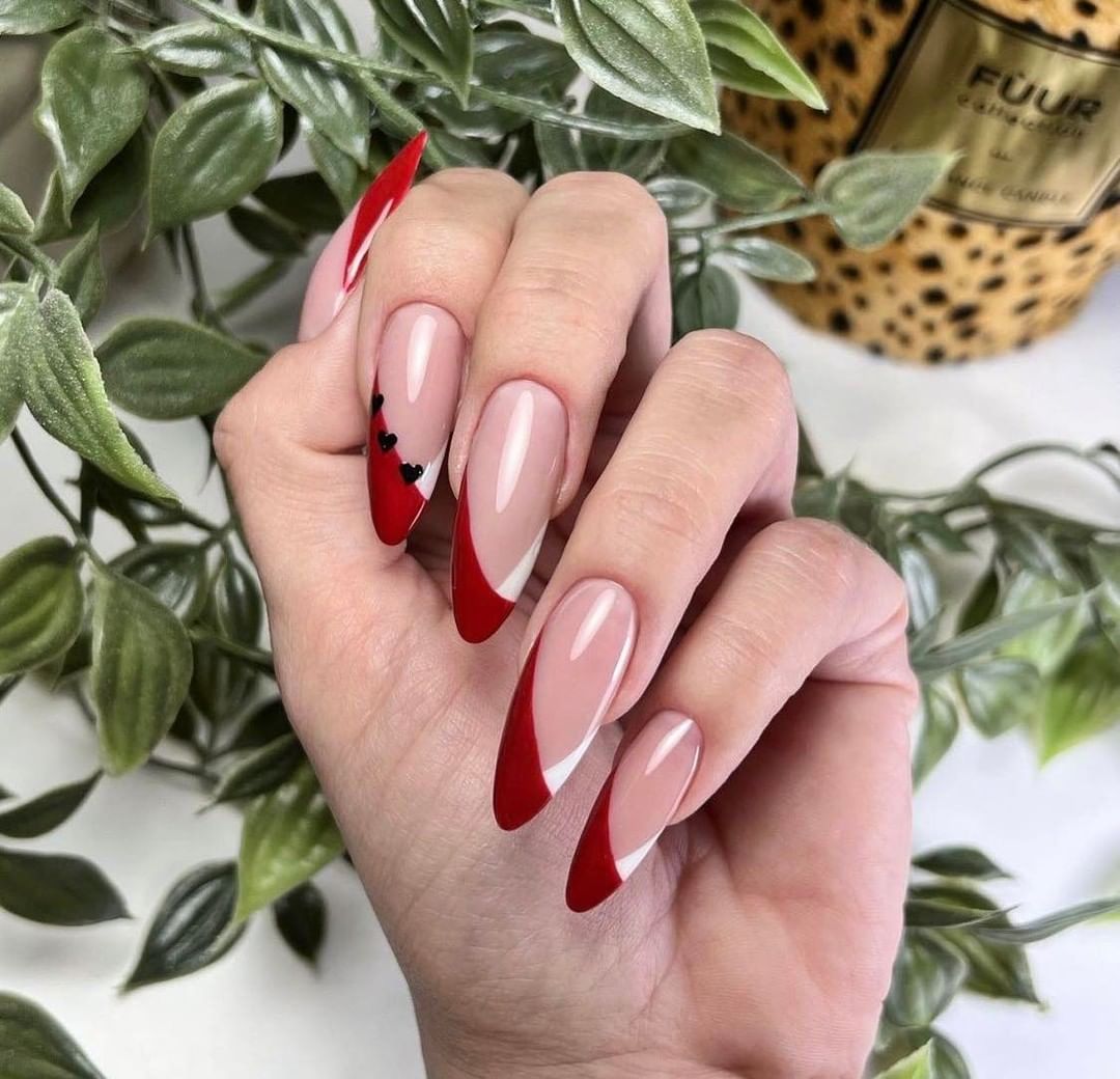 Стоит ли говорить, что французский маникюр — это классика? Конечно, нет. Многие модницы выбирают его тогда, когда не знают, какой же сделать дизайн. В сезоне 2026 мастера нейл арта предлагают обратить внимание на цветной френч. А почему он не может быть красным? Можете выбрать классическое сочетание с нюдовым ноготком, но оформить улыбку именно в красном оттенке, винном, бордо, малиновым. Кроме того, вы можете разнообразить его матовым топом, комбинациями с другими дизайнами и необычным сочетанием цветов.