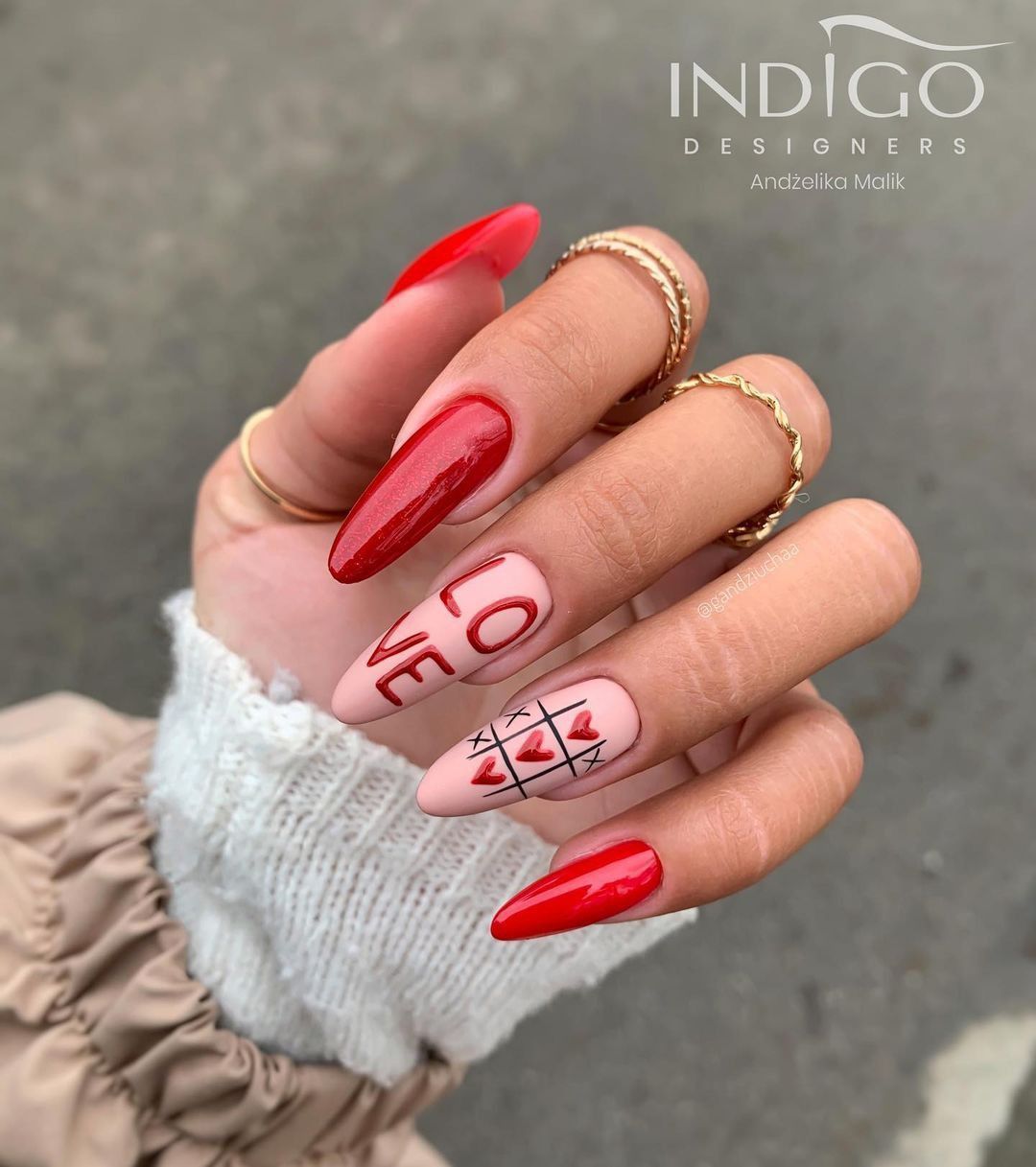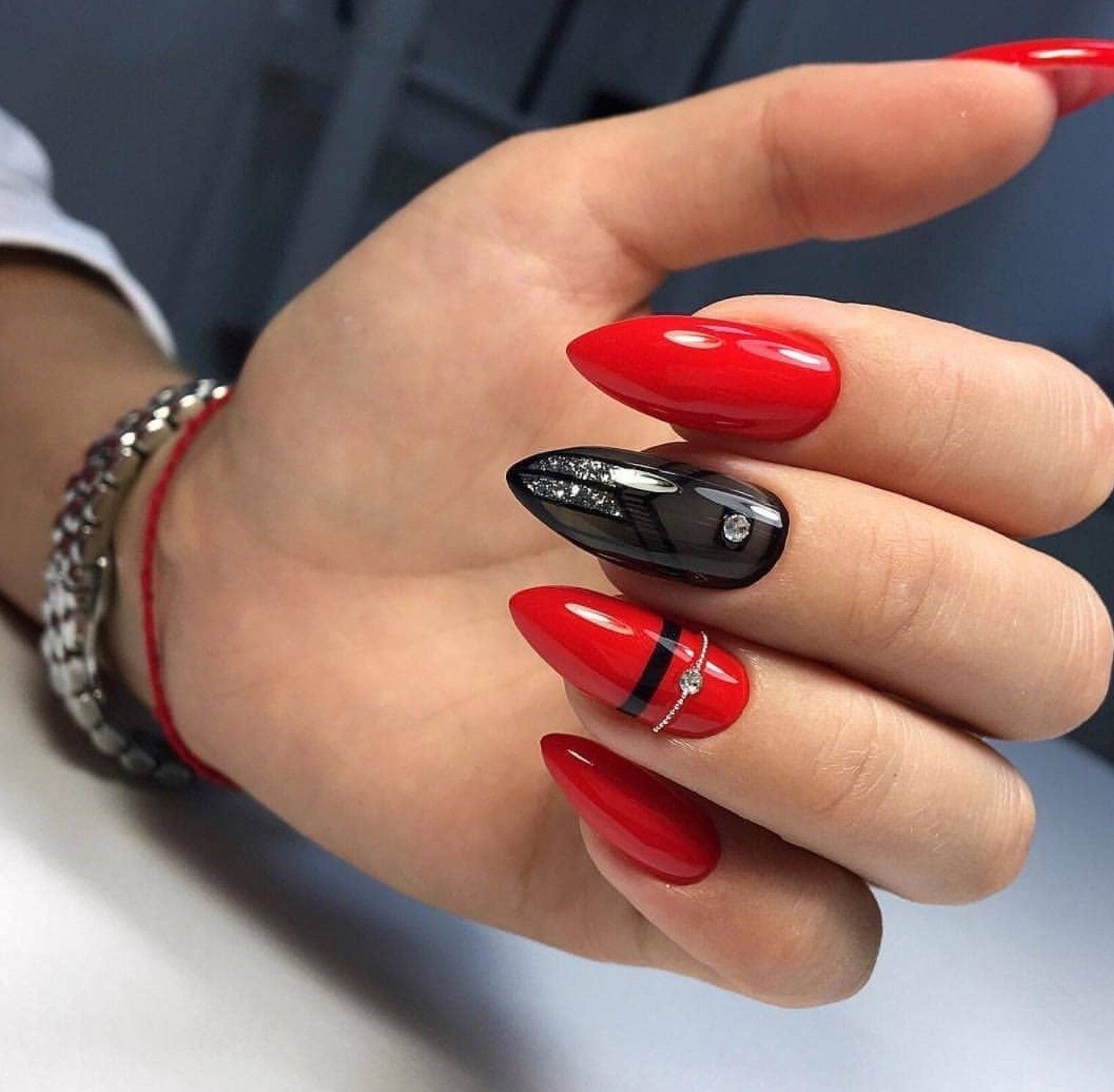 Такое название дизайна звучит довольно забавно, но он уже давно и прочно обосновался в топе лидеров по популярности. Хотя в этом сезоне красный маникюр в стиле разные руки немного обновился. Теперь мастера непросто оформляют руки в разных цветах. Например, красном и белом, красном и черном, красным и розовым и др. Но еще играют с текстурами.