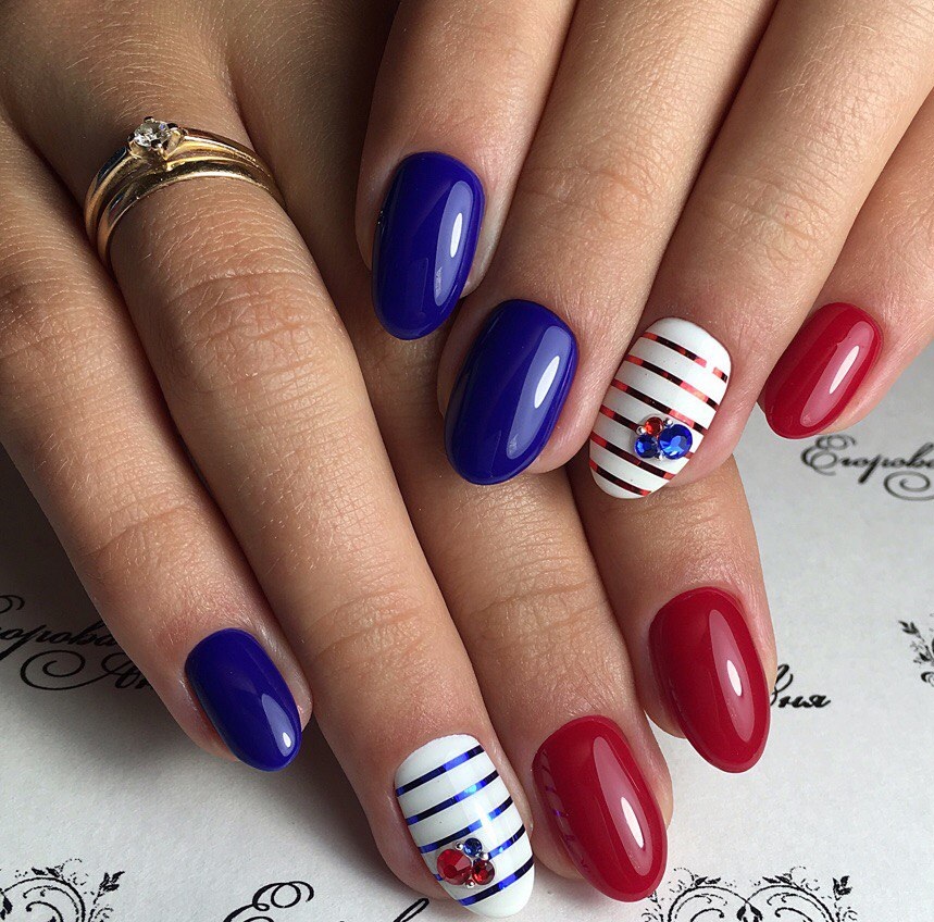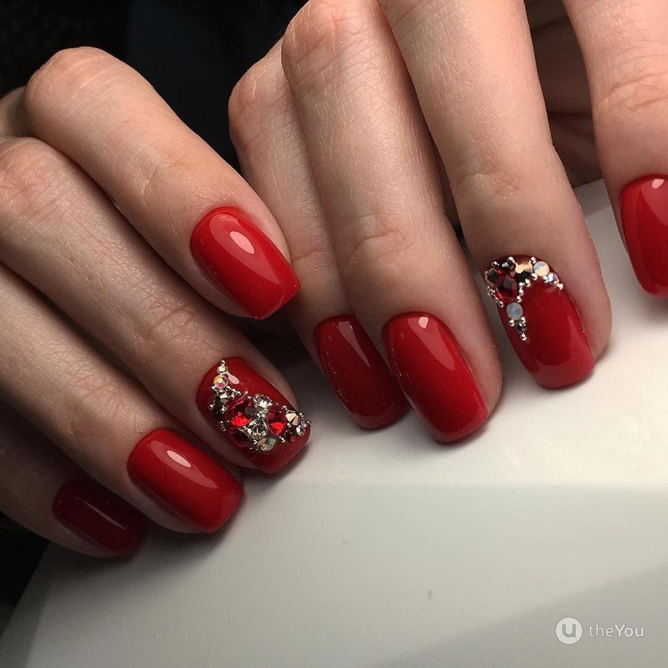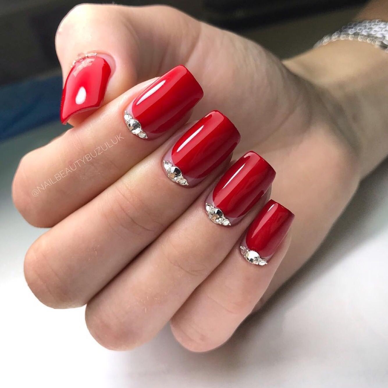Особенно если дело касается дневного маникюра. Для красного маникюра мы рекомендуем выбрать классические серебристые стразы. И самым оптимальным вариантом мастера называют вариант дизайна с выделением всего одного ноготка с помощью втирки.