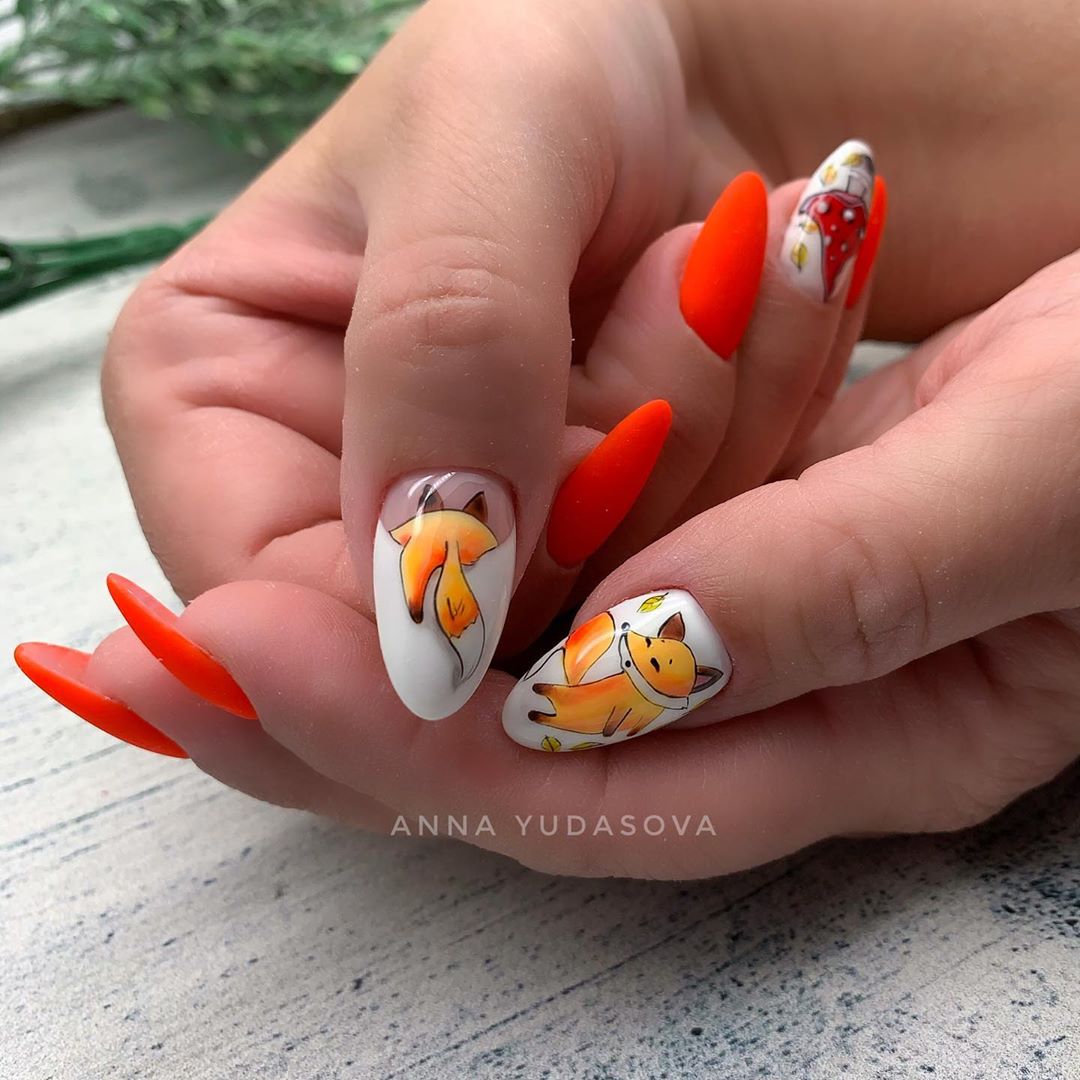 Зимой или осенью в моде совсем другие рисунки. Это грозди рябины, дождь, резиновые сапоги и зонтики. А зимой, конечно, новогодняя тематика. Никаких ограничений нет, можете нарисовать все, что вам хочется. И чем сложнее и интереснее будет рисунок, тем трендовее ваш маникюр.