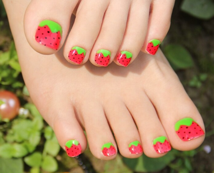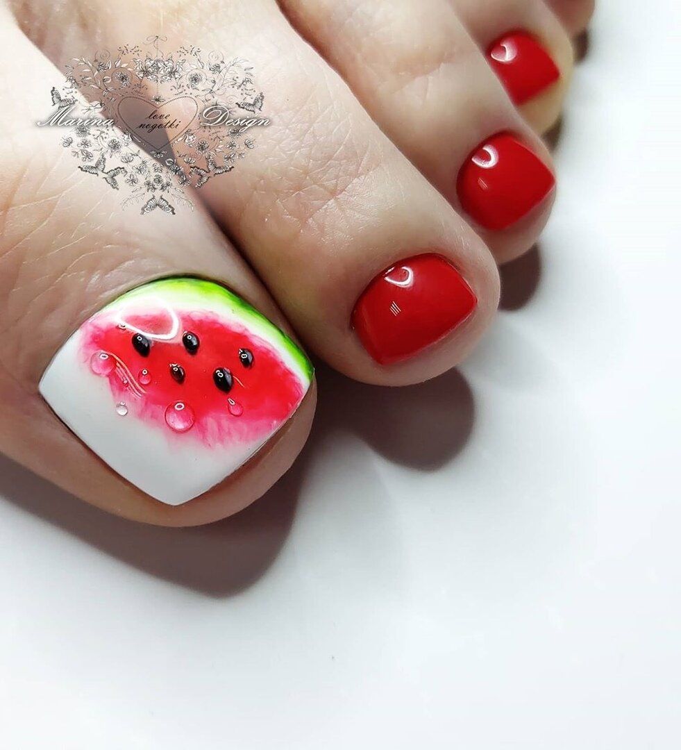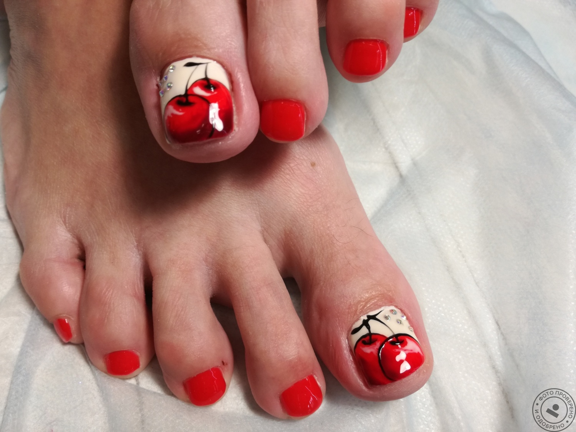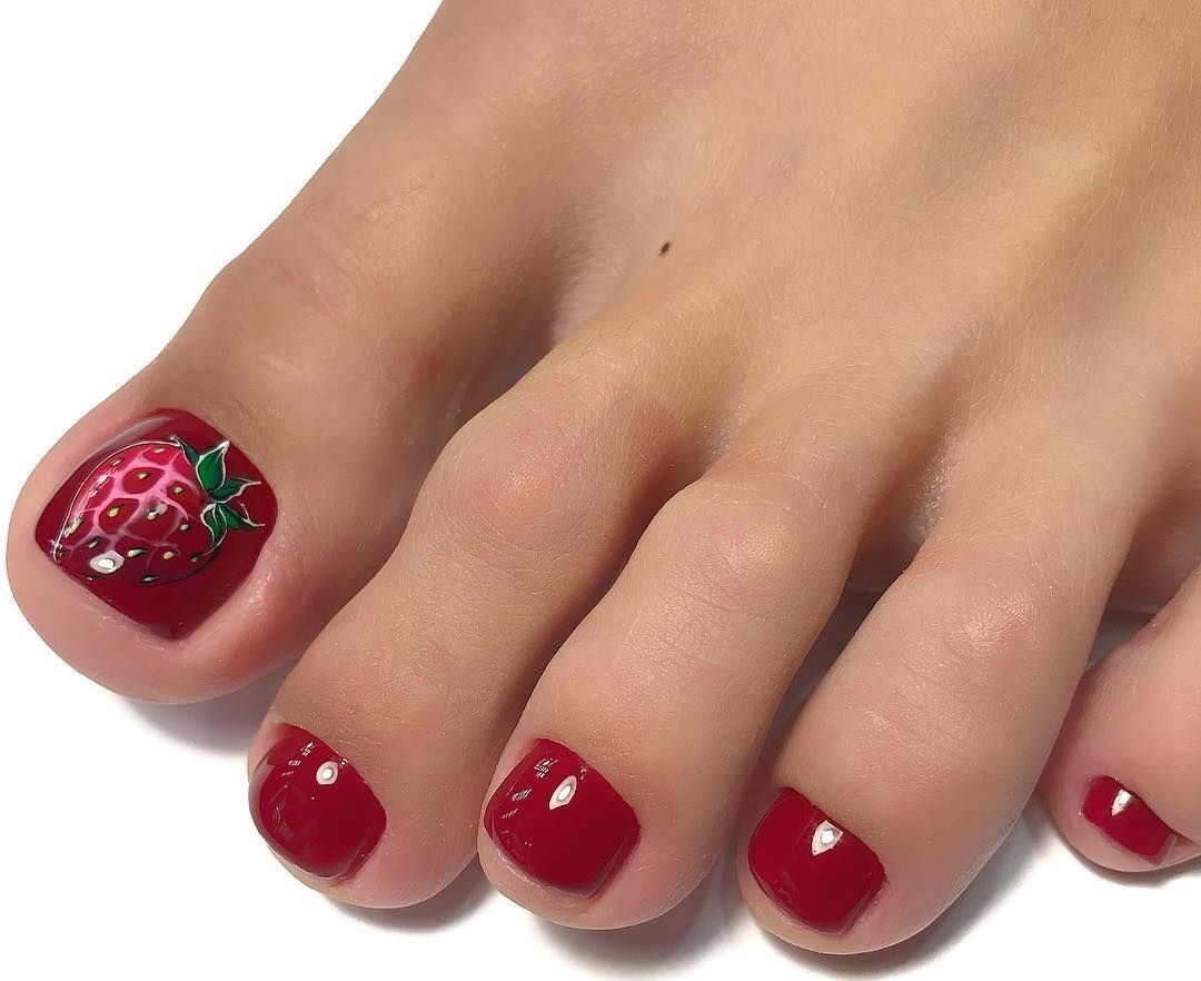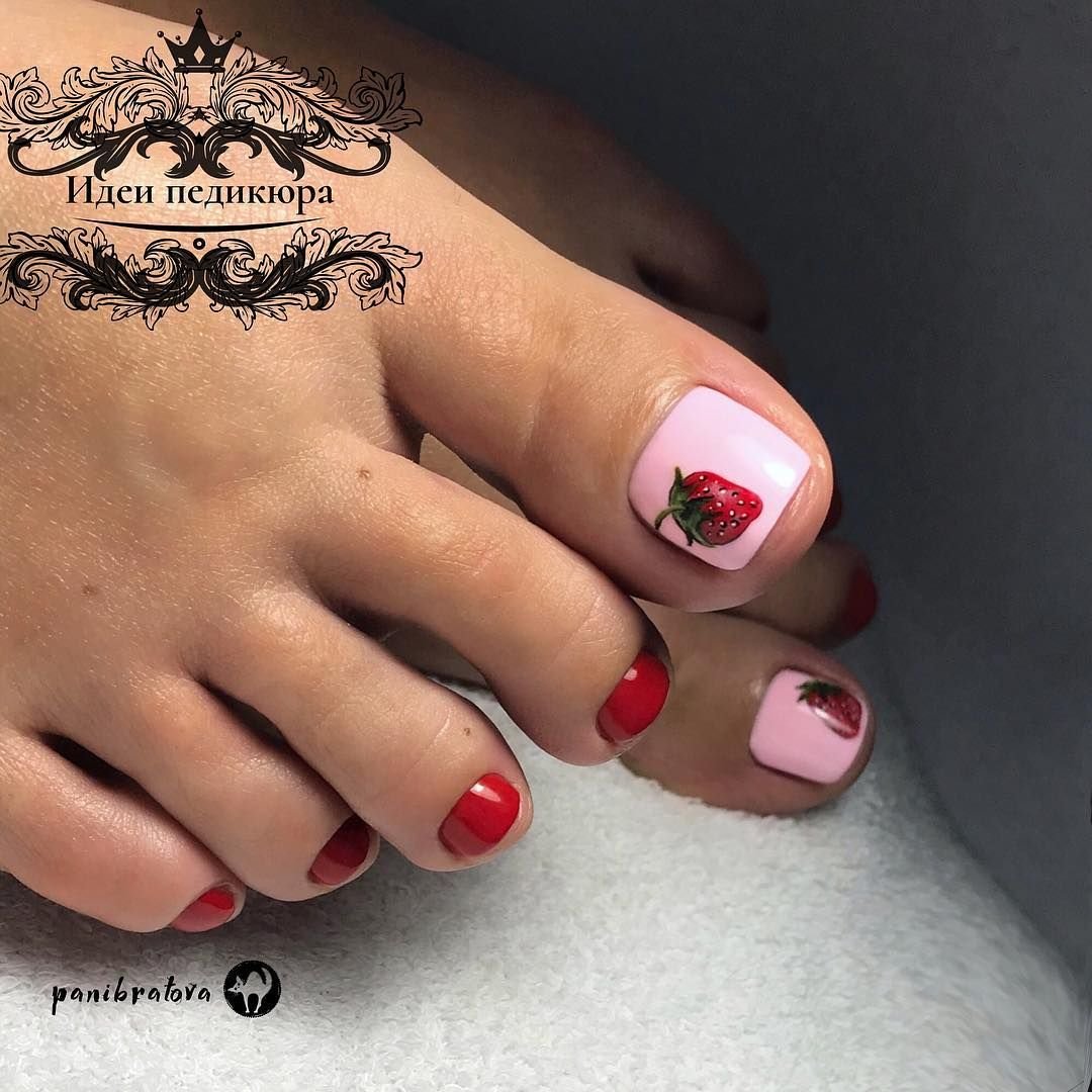 Делаете педикюр самостоятельно? Добавьте немного озорства — выбирайте милые или дерзкие наклейки для ногтя большого пальца. Например, остроты может добавить изображение перчика, а милоты — вишенки или яркие клубнички на белом или молочном фоне.