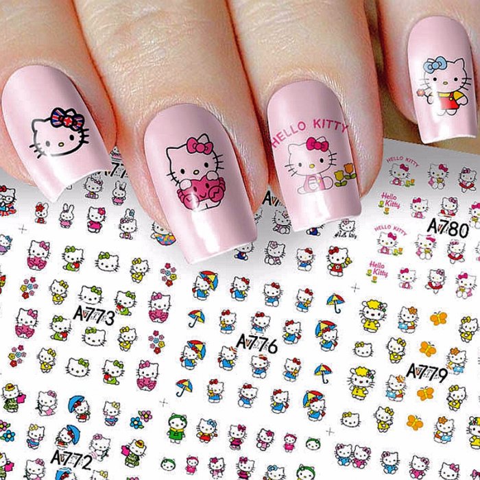 Не дорогим вариантом является дизайн детских ногтей с использованием наклеек. Ногти становятся милыми и нарядными.