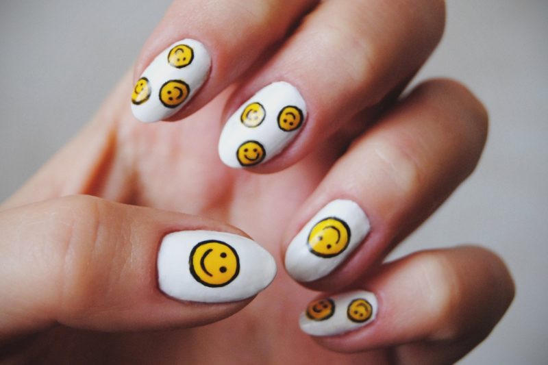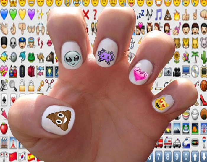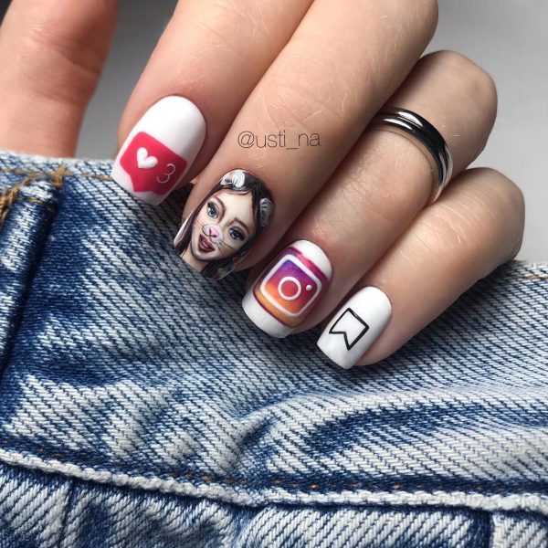 Набирает популярность маникюр по тематике социальных сетей. Это могут быть логотипы и смайлы, нанесенные на ногтевую пластину.