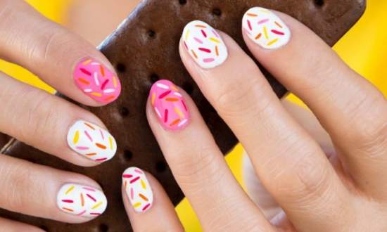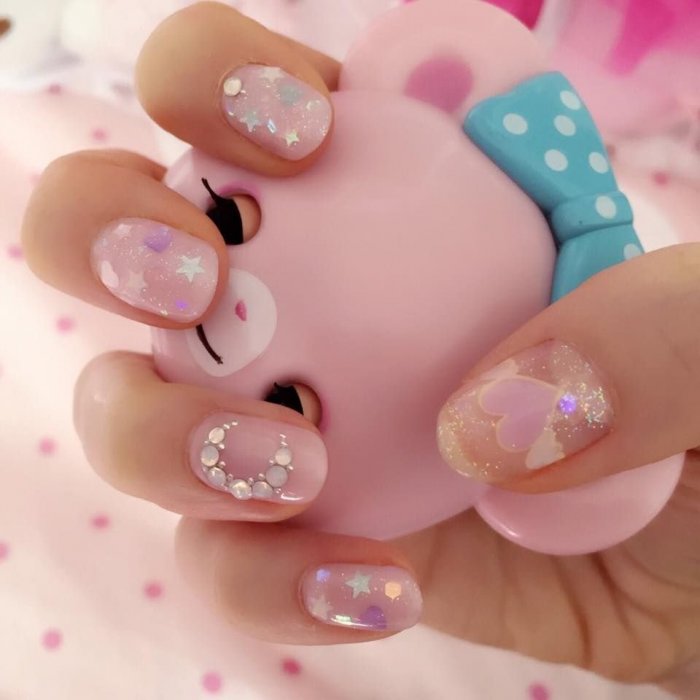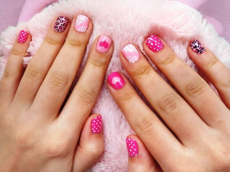 Используются розовые оттенки, ногти с рисунками и блестками. Они порадуют маленьких модниц в возрасте 10 лет или 13 лет.
