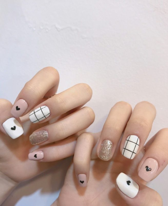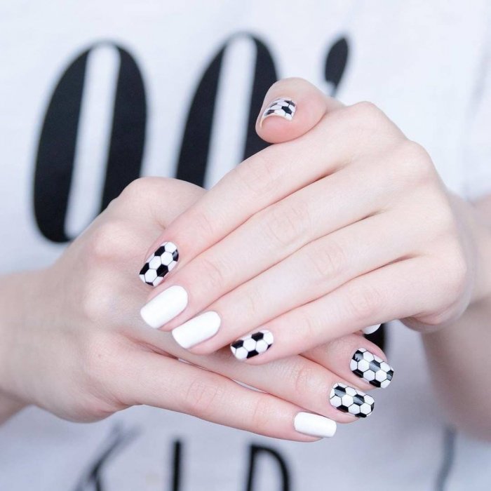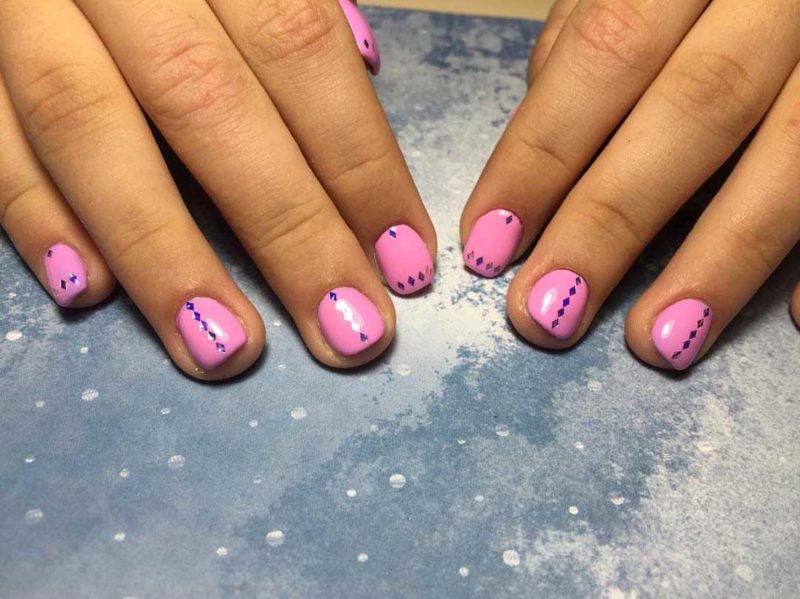 Короткие ногти могут стать хорошей базой для создания шикарного маникюра. К ним отлично подойдет использование накладных переводных наклеек, нарисованные простые узоры, линии в виде клеток, шахматной доски. Последние два варианта будут очень гармонично смотреться.