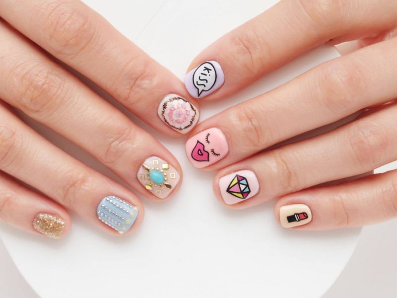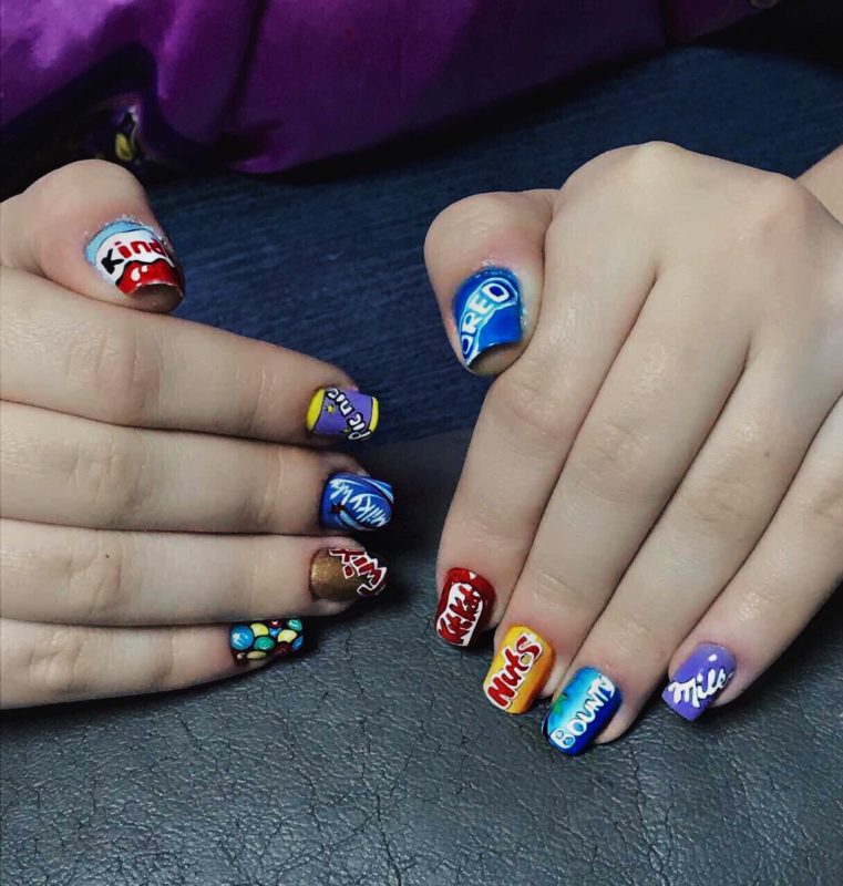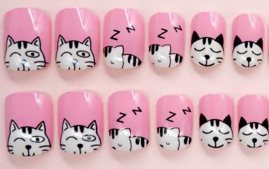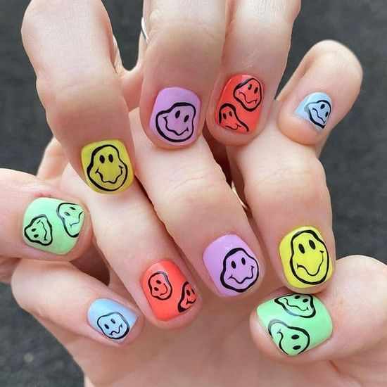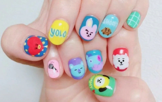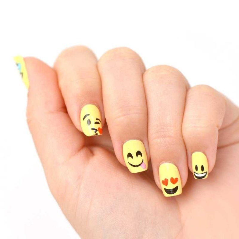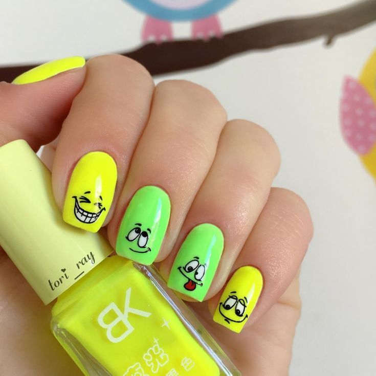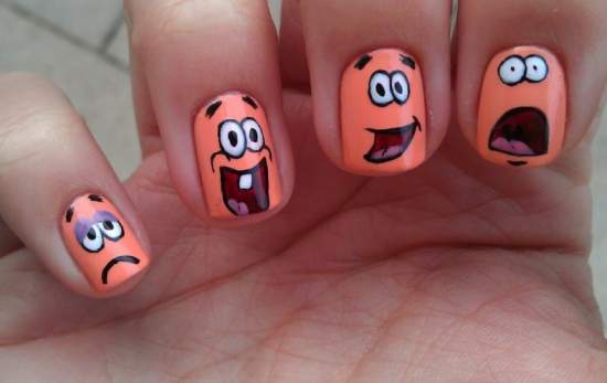 - На каждую ногтевую пластину наносится разная мордочка героя с какой-либо эмоцией.