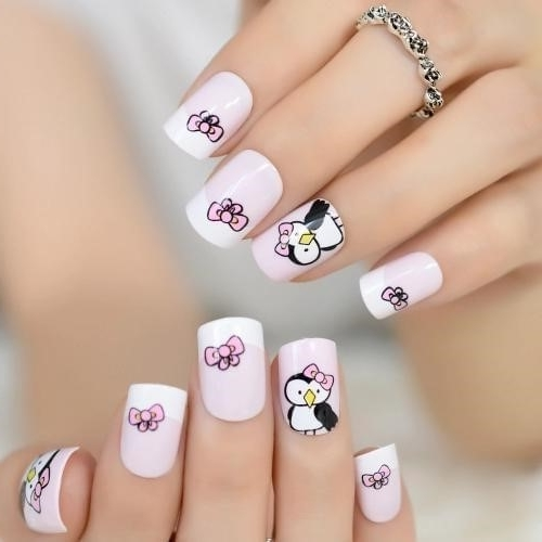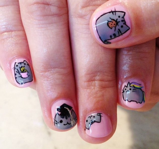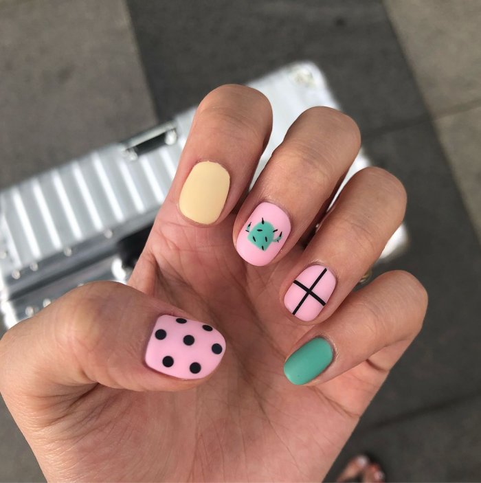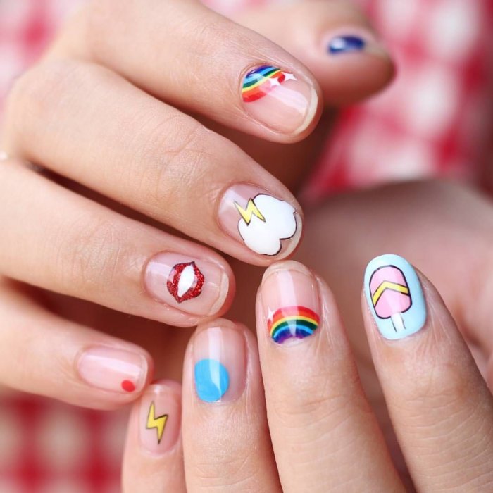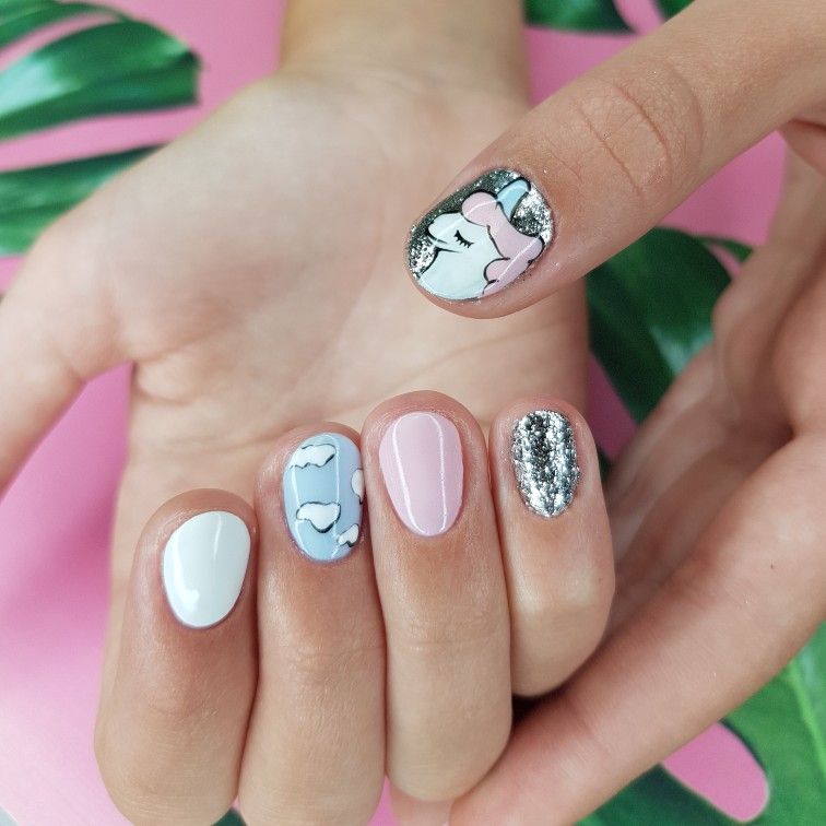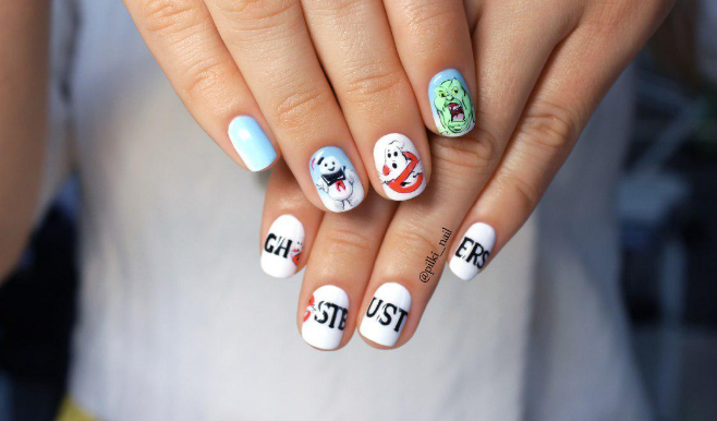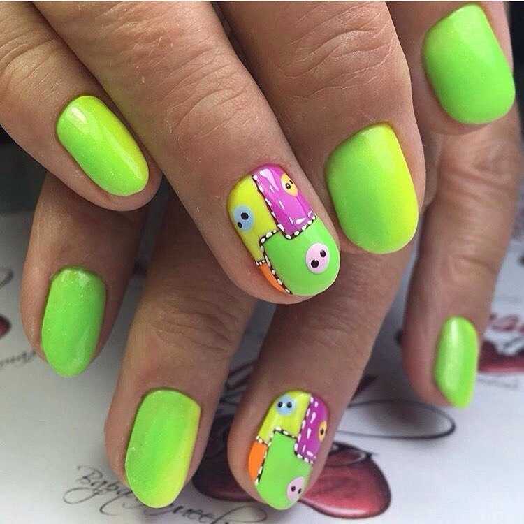 Поклонниц просмотра мультфильмов порадует маникюр с изображениями любимых персонажей. На каждом ногте может находиться разный герой.