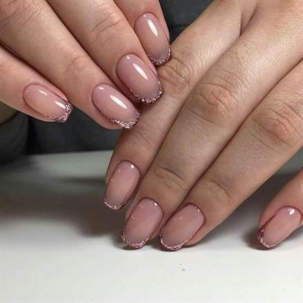 Хорошим решением будет использование градиентного френча. Из блесток оформляются дуги в виде улыбки по краям ногтей. Блестки могут быть разных цветок, но чтобы не сливались с оттенком основы.