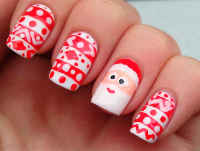 Маникюр для Нового года должен быть праздничным. Для длинных ногтей девочек от 13 или 14 лет подходят блестящие и яркие дизайны, а для коротких ногтей лучше всего подбирать узоры.