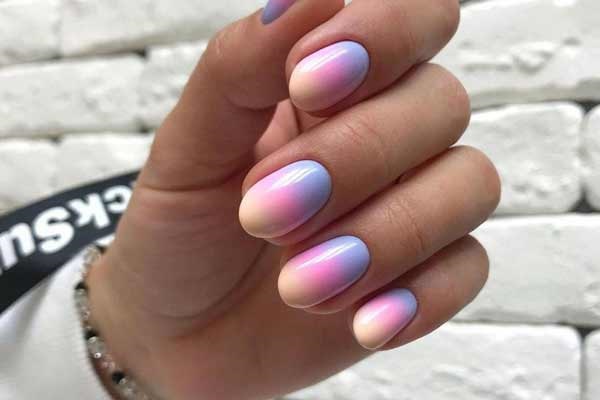 Применяется техника градиент. Например, переход розового оттенка в более светлые тона.